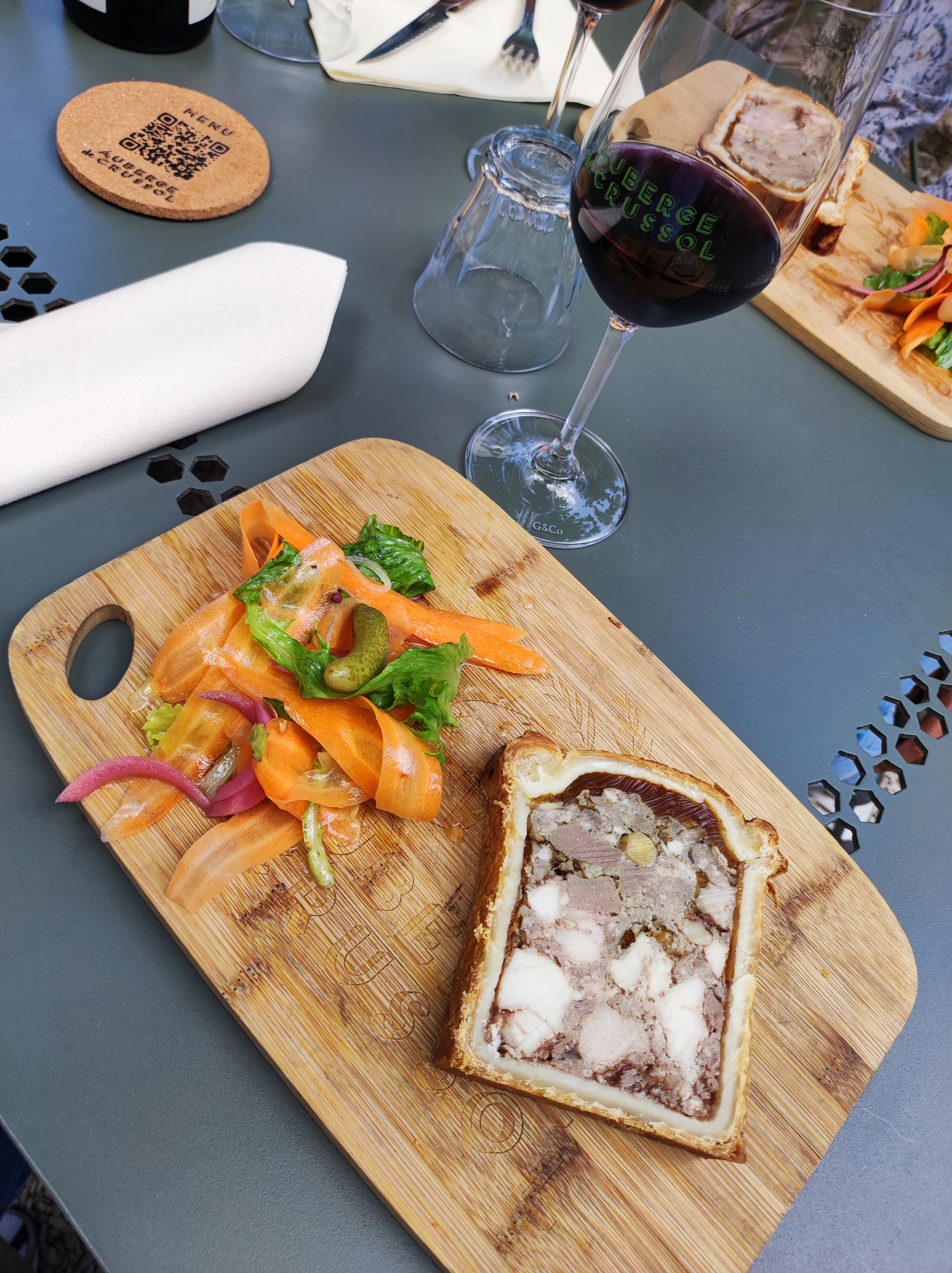 Plats savoureux et copieux. Nous avons aimé la présentation des légumes (nous étions 4 ) et les faits maison (pâté croûte, boudin, caillette) . Le service était parfait(très aimable et prévenant juste ce qu'il faut)et nous avons mangé à notre rythme. Nous avons mangé à l'intérieur malgré le soleil,car il y avait du vent et un des convives était très âgé.