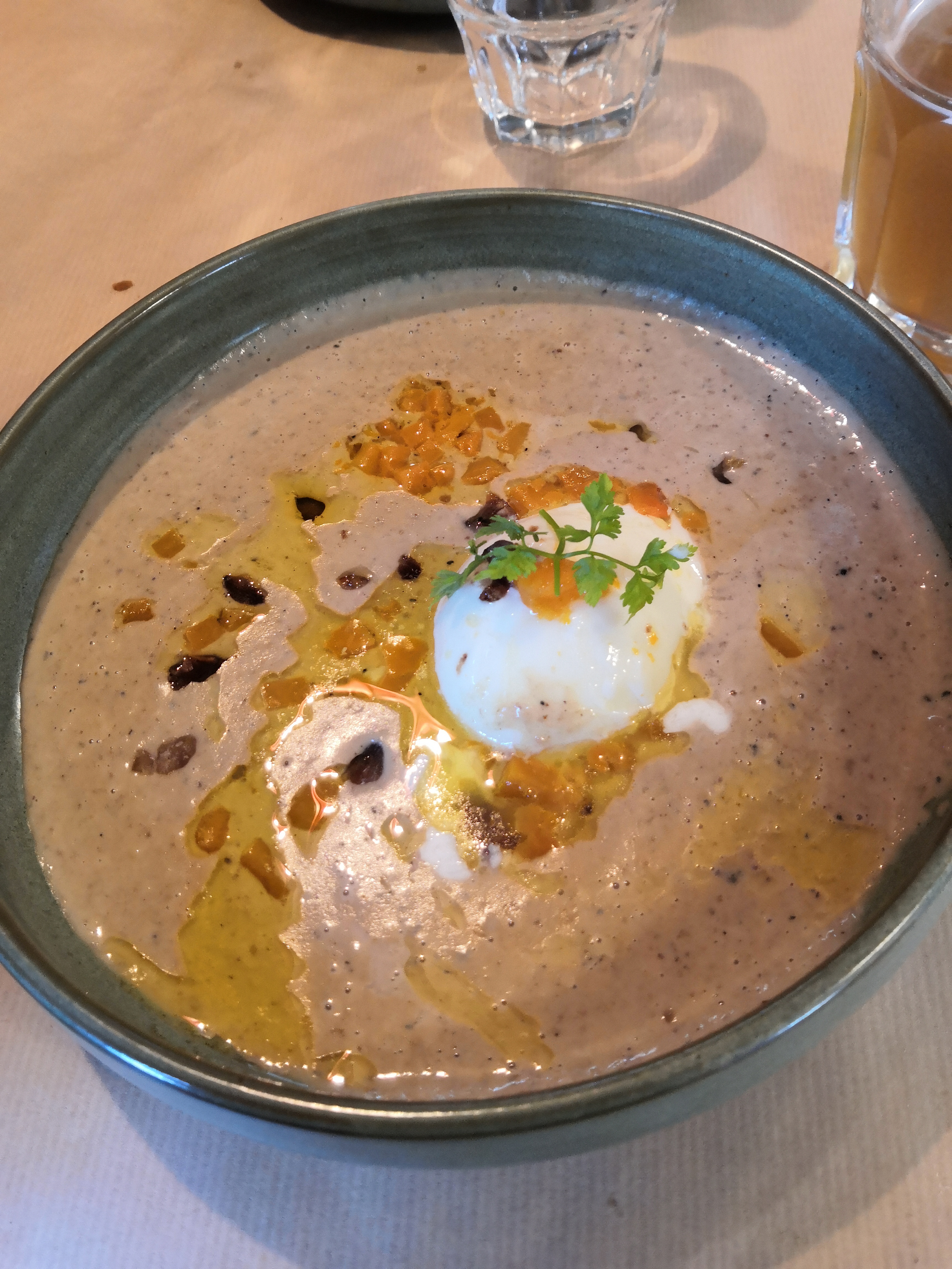 Rien d'exceptionnel gustativement, la tarte a l'onion était correct mais manque de saveurs , idem pour le velouté de châtaigne . Le burger seul était très bon oui mais alors l'accompagnement est très décevant, de la salade iceberg sans sauce et des pomme de terre cuite à l'eau à peine rôti. En sortant on ne s'est pas dit qu'on avait bien mangé c'est dommage.