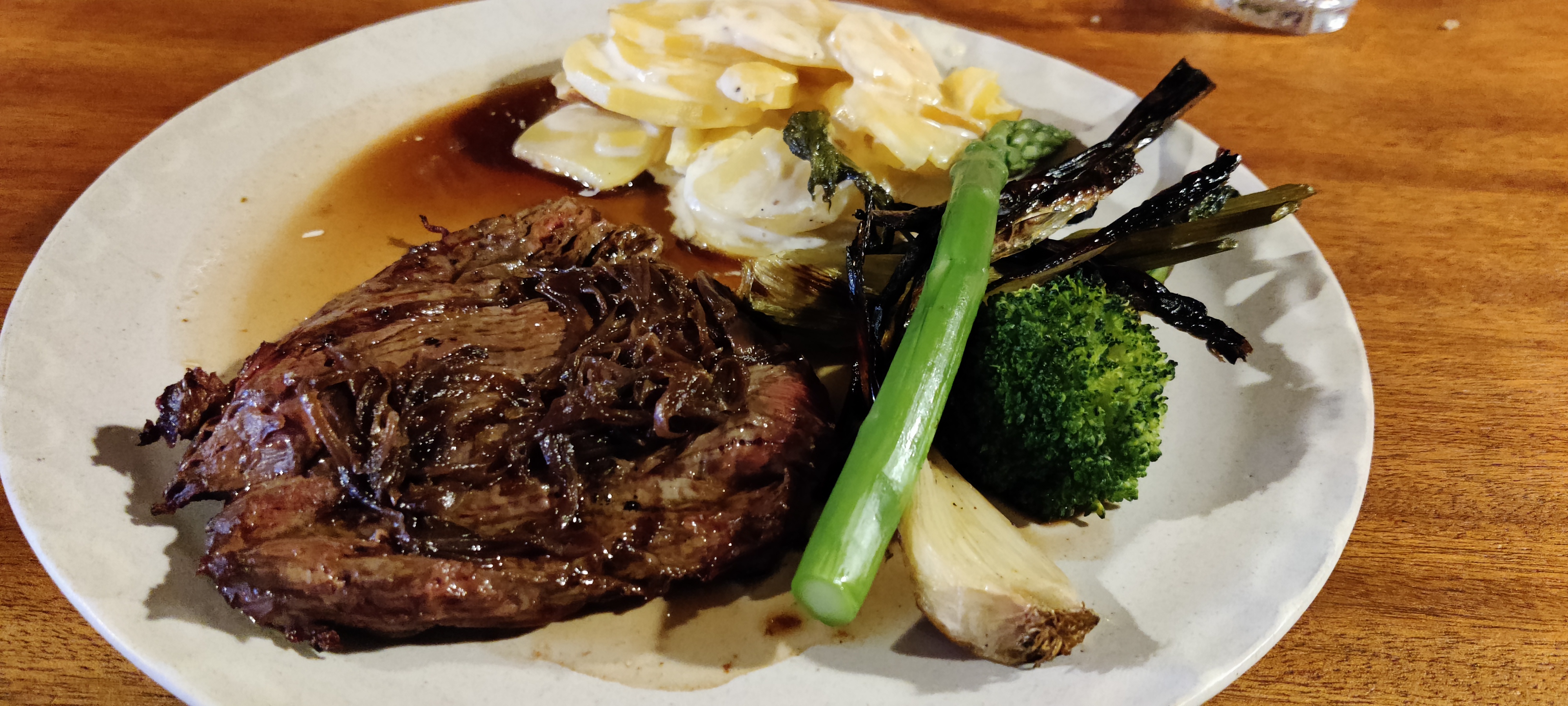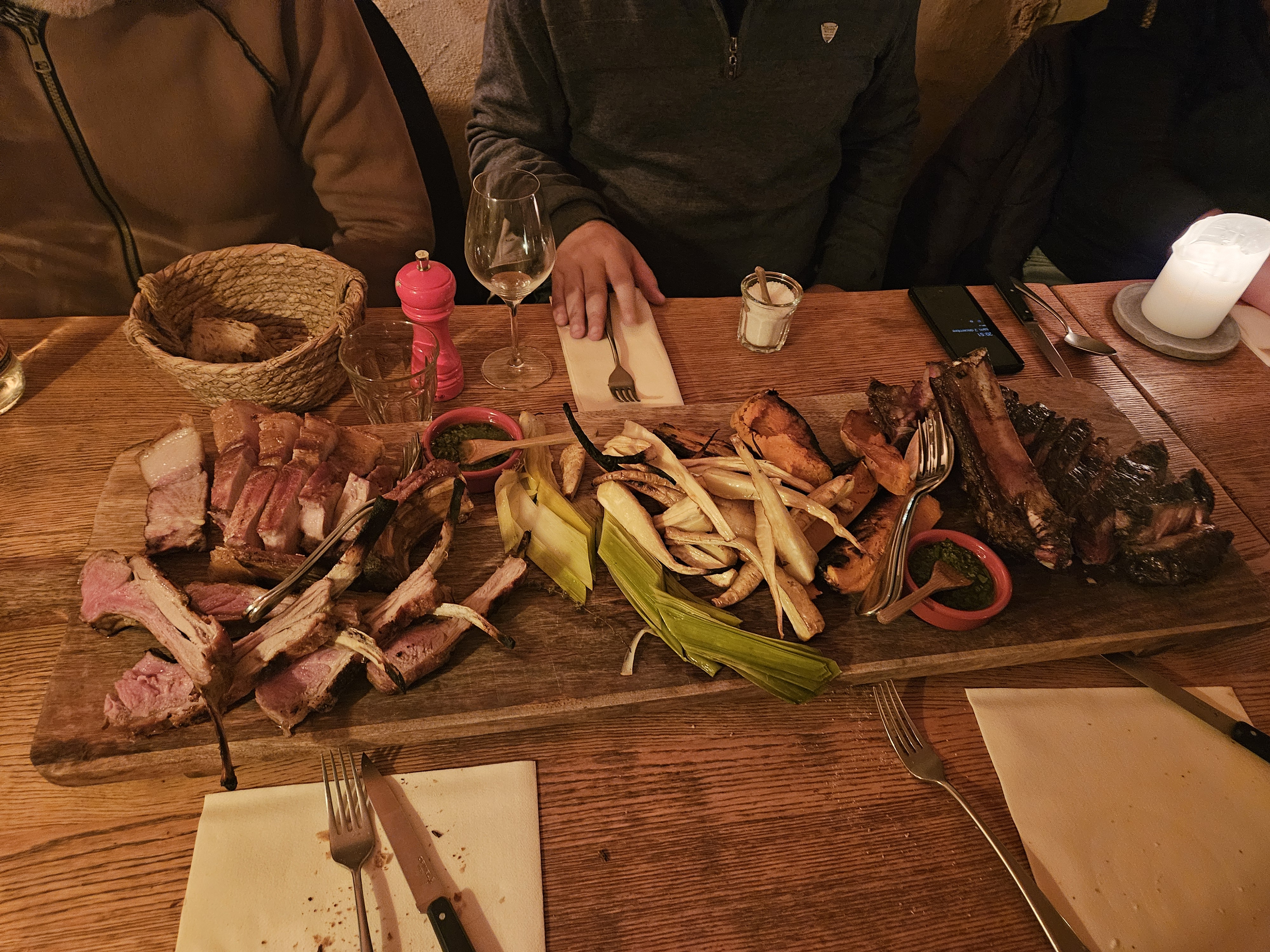 Nous avons dîner à l'extérieur, la vue est sublime avec le coucher de soleil. La viande cuite au feu de bois, en provenance de producteurs locaux est excellente. Une adresse à retenir!