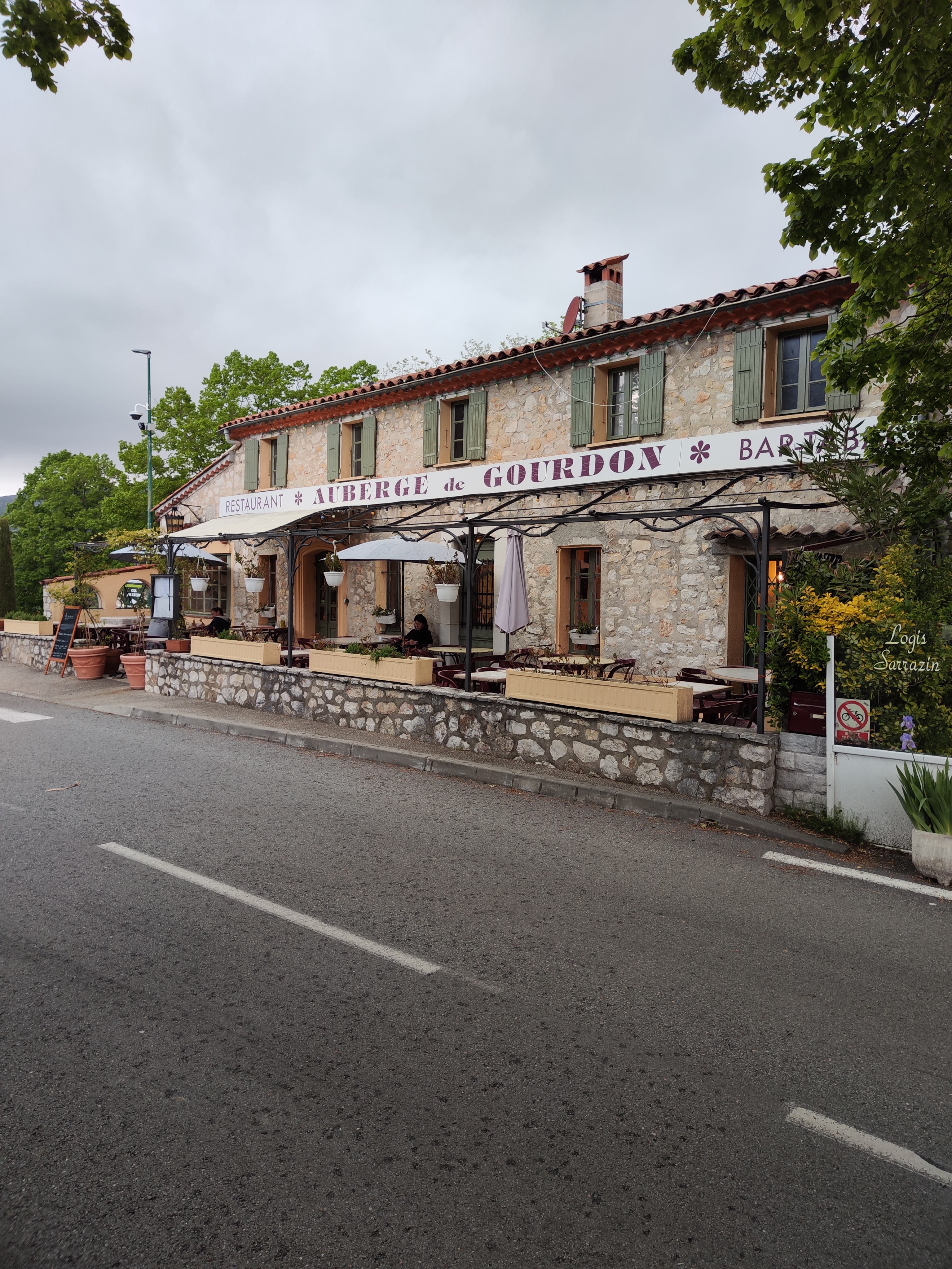 En moyen montagne niche juste en face du village de Gourdon. L'auberge propose une carte avec quelques entrées 5 plats et 5 desserts. Cadre convivial et très bonne accueil