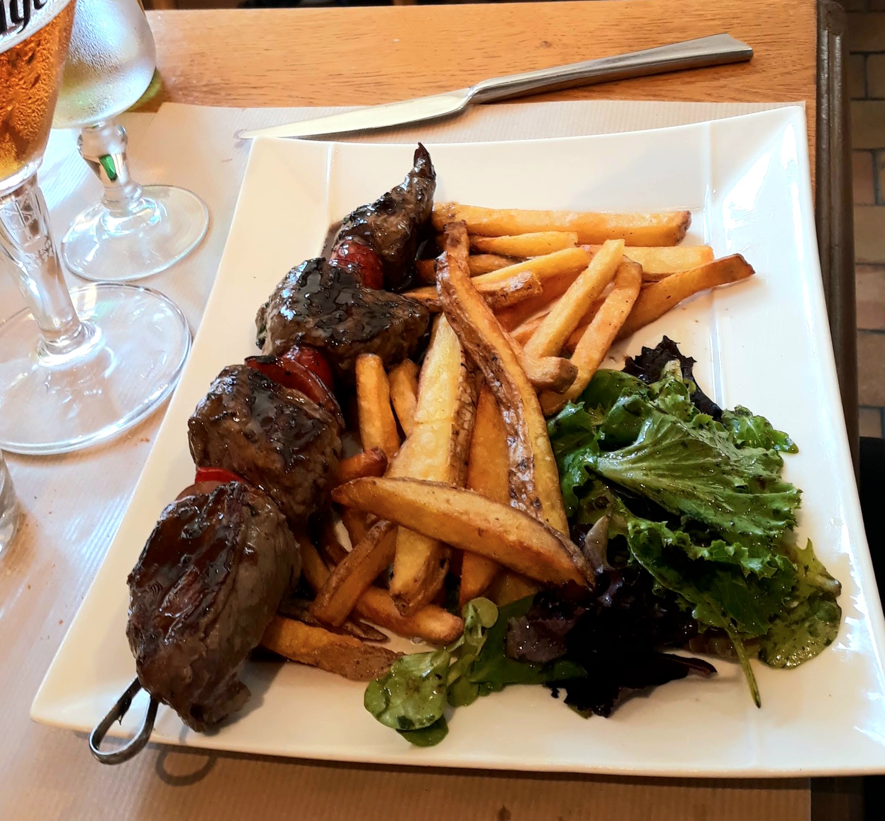 Plats vraiment très bons, frites faites maison, excellentes!! Service sympa, ambiance chaleureuse mais l'été, un peu trop de mouches 😁