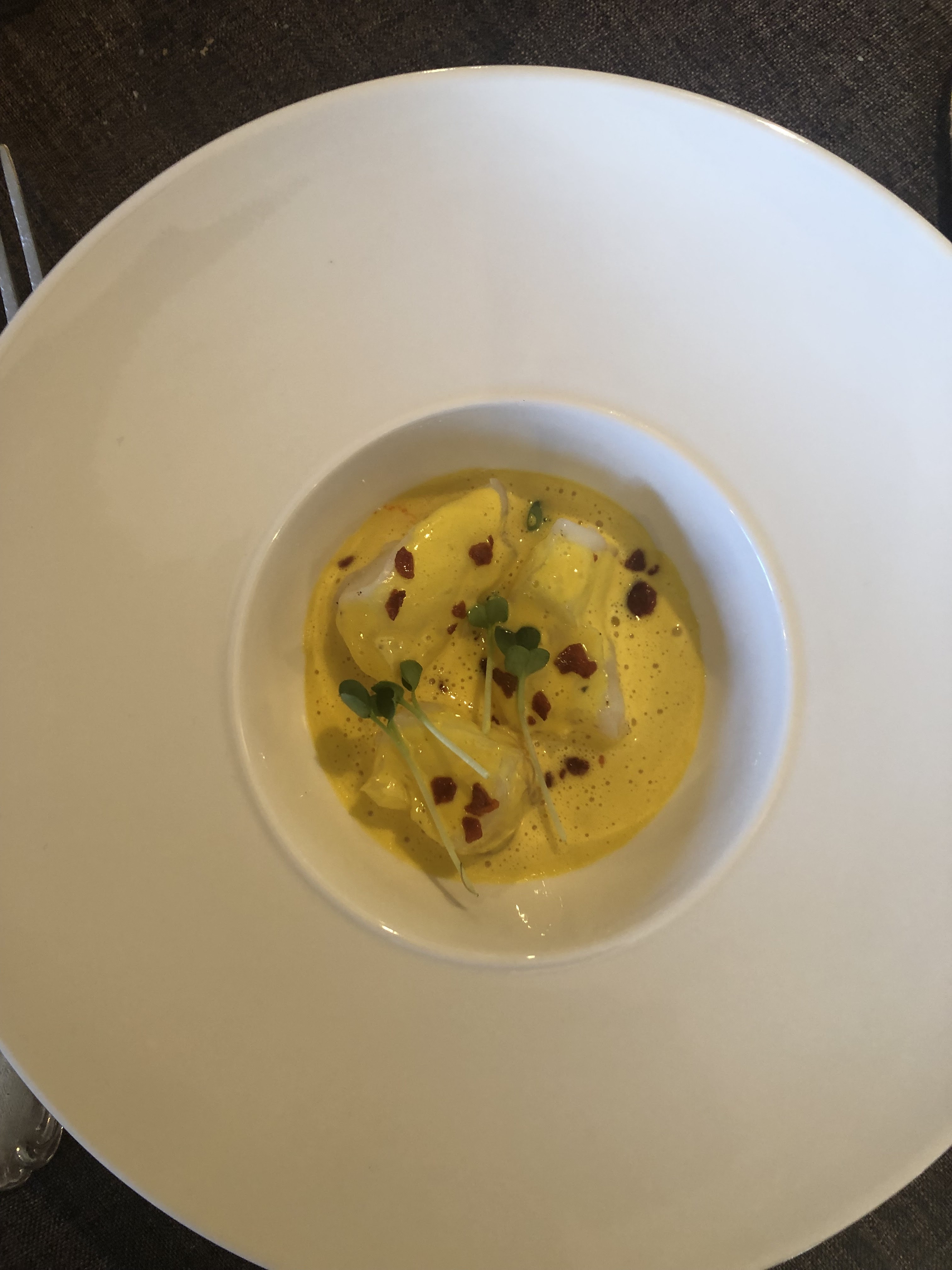 Parfait du début à la fin rien à redire. Joli cadre, l'équipe est fort sympathiques et les plats… Mention spéciale pour les ravioles de langoustine et le suprême de volaille au vin jaune et morilles.