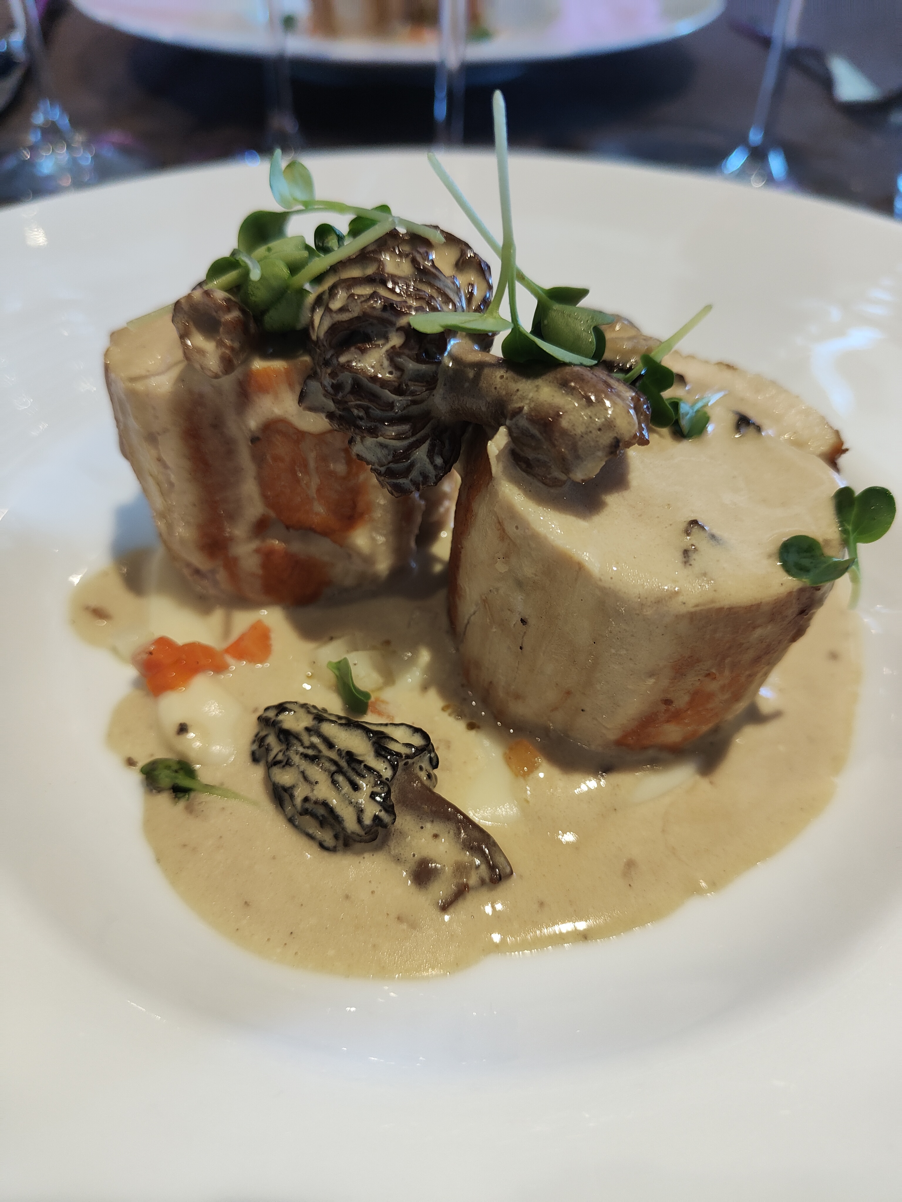 Excellent accueil, ravioles de saumon parfaites, et suprême de dinde avec jus de viande en suivant. Je conseille vraiment.