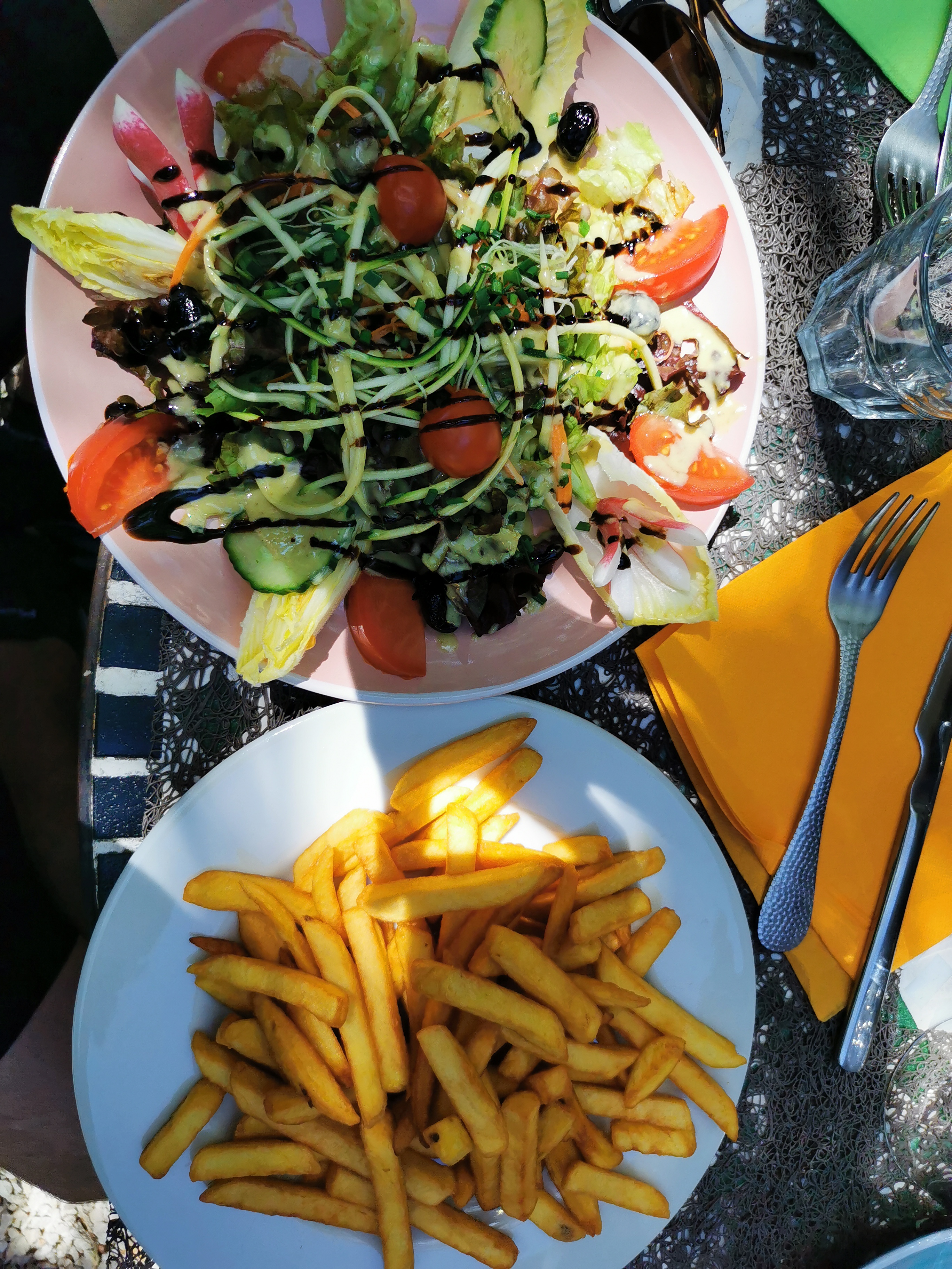 Restaurant sans prétention avec belle terrasse ombragée, plats simples et bons (les salades).