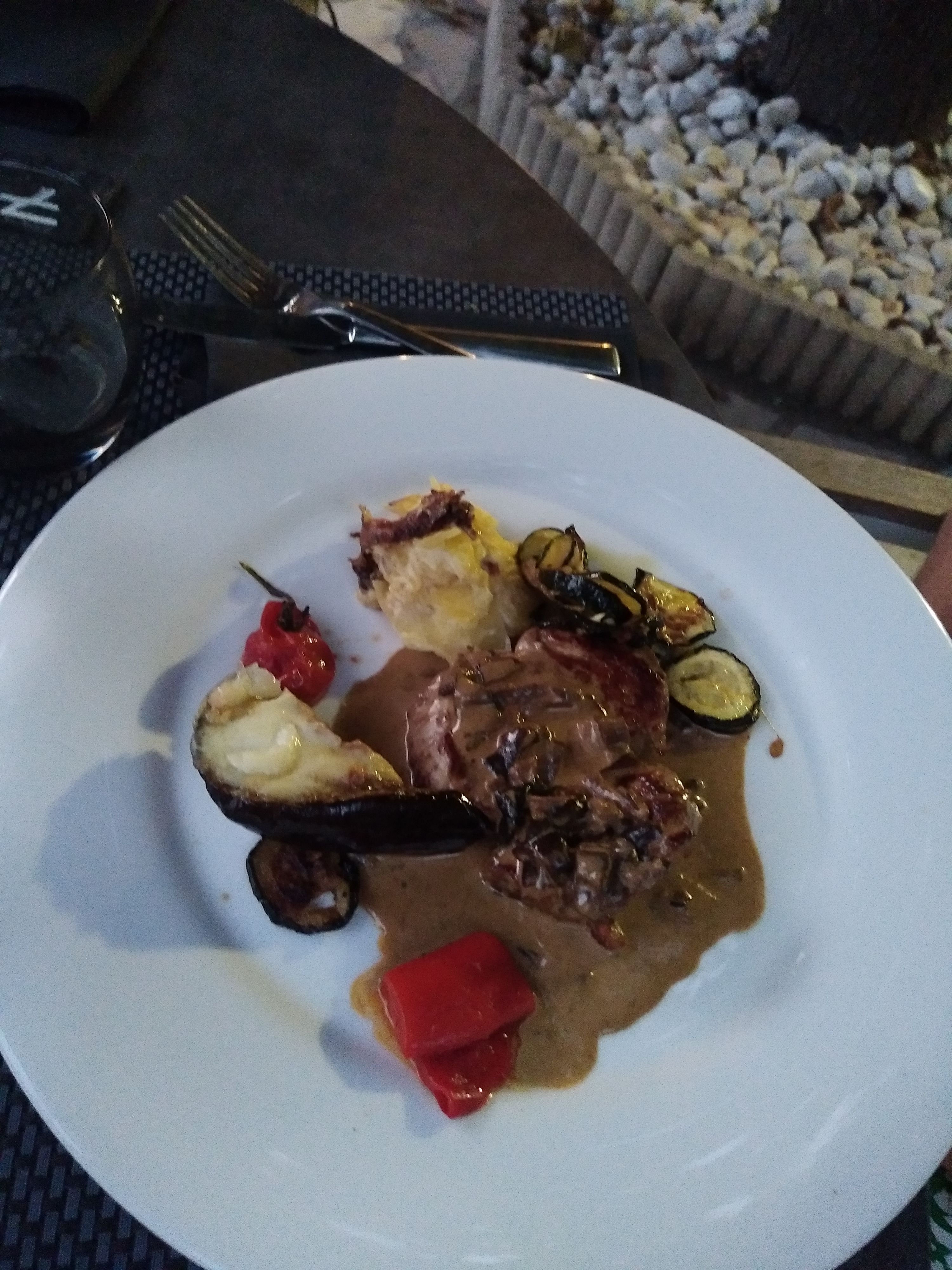 repas avec un ami pour son anniversaire ; repas très bien malgré un bémol car le plat présenté avec la viande nécessiterait davantage de légumes , peu de brocolis et champignons sinon entrée très bien la viande agneau ou cochon cuit à point et dessert au chocolat parfait ainsi que le carpaccio d'ananas surprise agréable en fin de repas un digestif offert par la maison ce qui n'est pas toujours le cas dans certains restaurants locaux à recommander