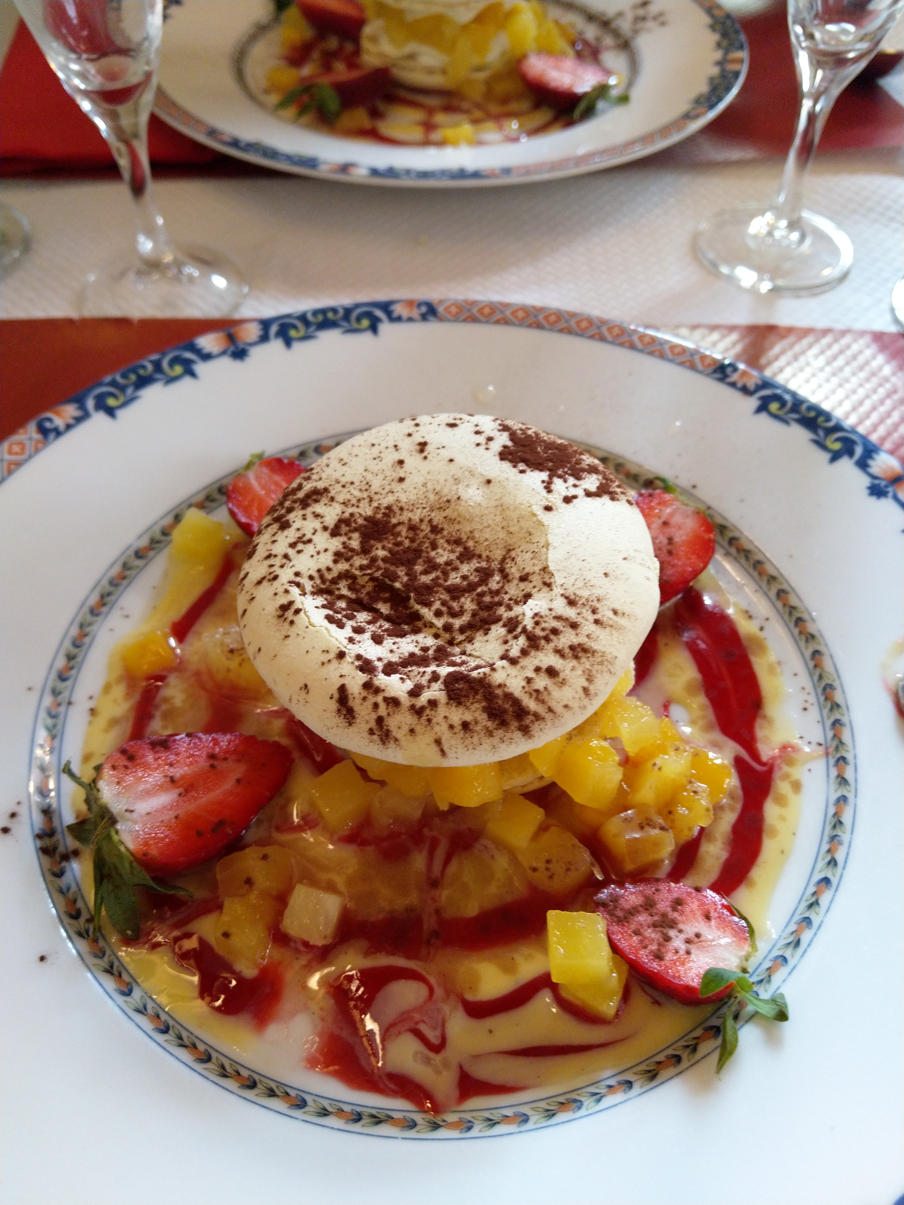 Deuxième passages: Je n'ai pas apprécier la sauce d'y cabillaud ni le crumble de chorizo aucun morceaux dedans ni de goût domage. Le dessert très bons crème brûler abricot je recommande, l'entremet macarons framboises léger, la sauce servi avec et en trop elle fausse le dessert.