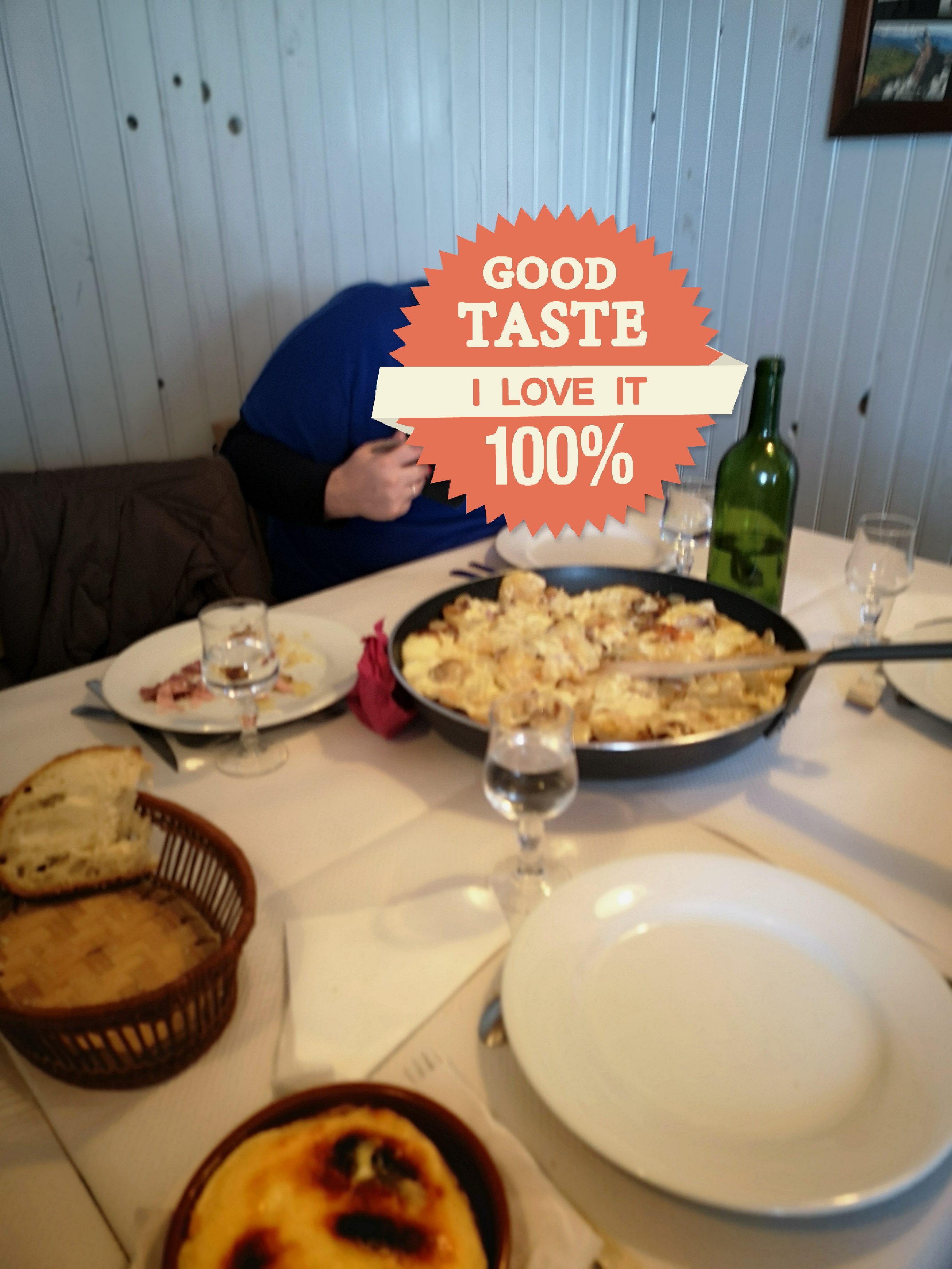 Fondue de saint nectaire pas mauvaise mais très salée et peut être un peu trop cuite. Cadre agréable et rustique. Serveuse très gentille mais parfois un peu trop intrusive.... Difficile a trouver gps indispensable. Réserver avant de venir.