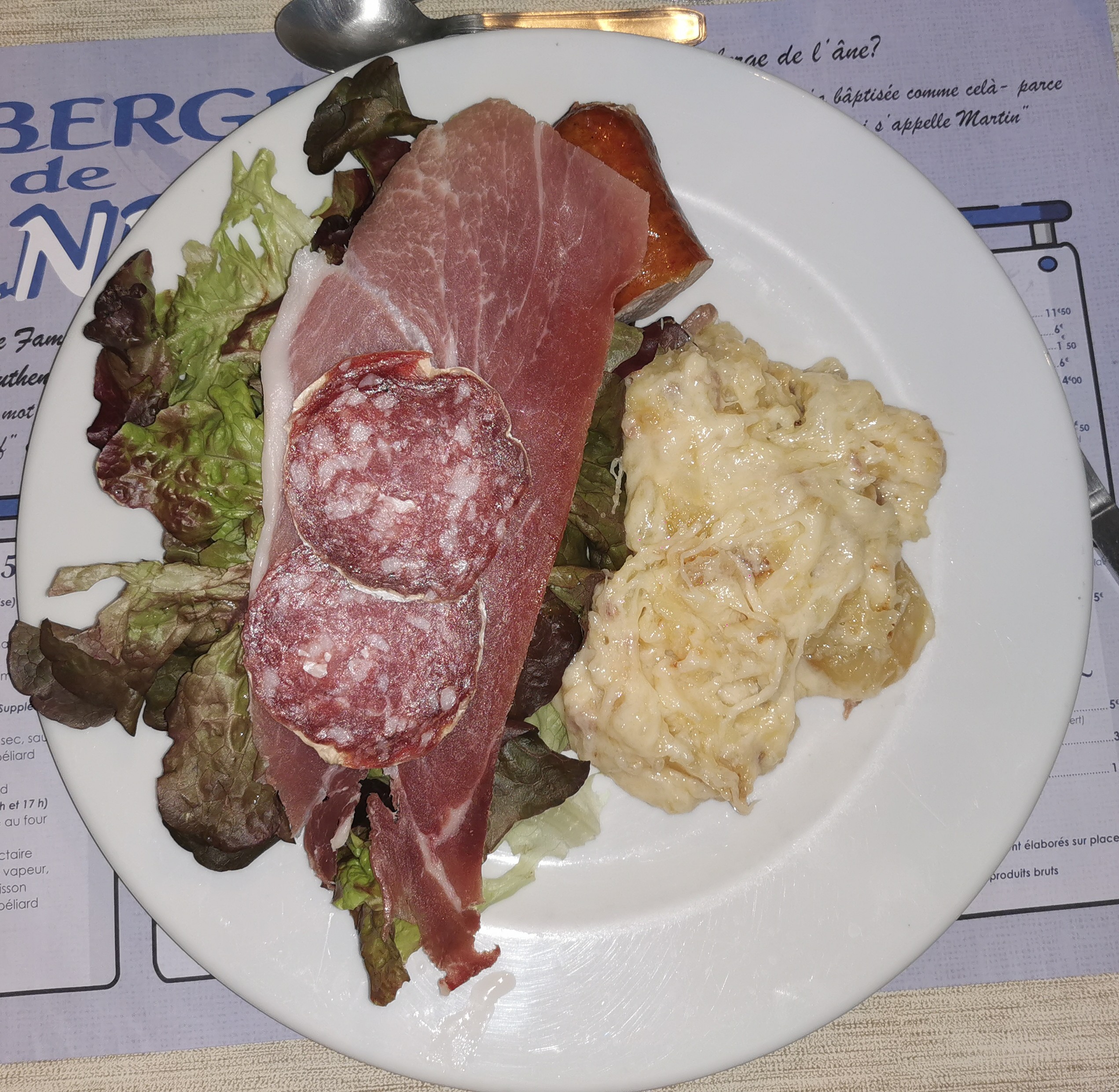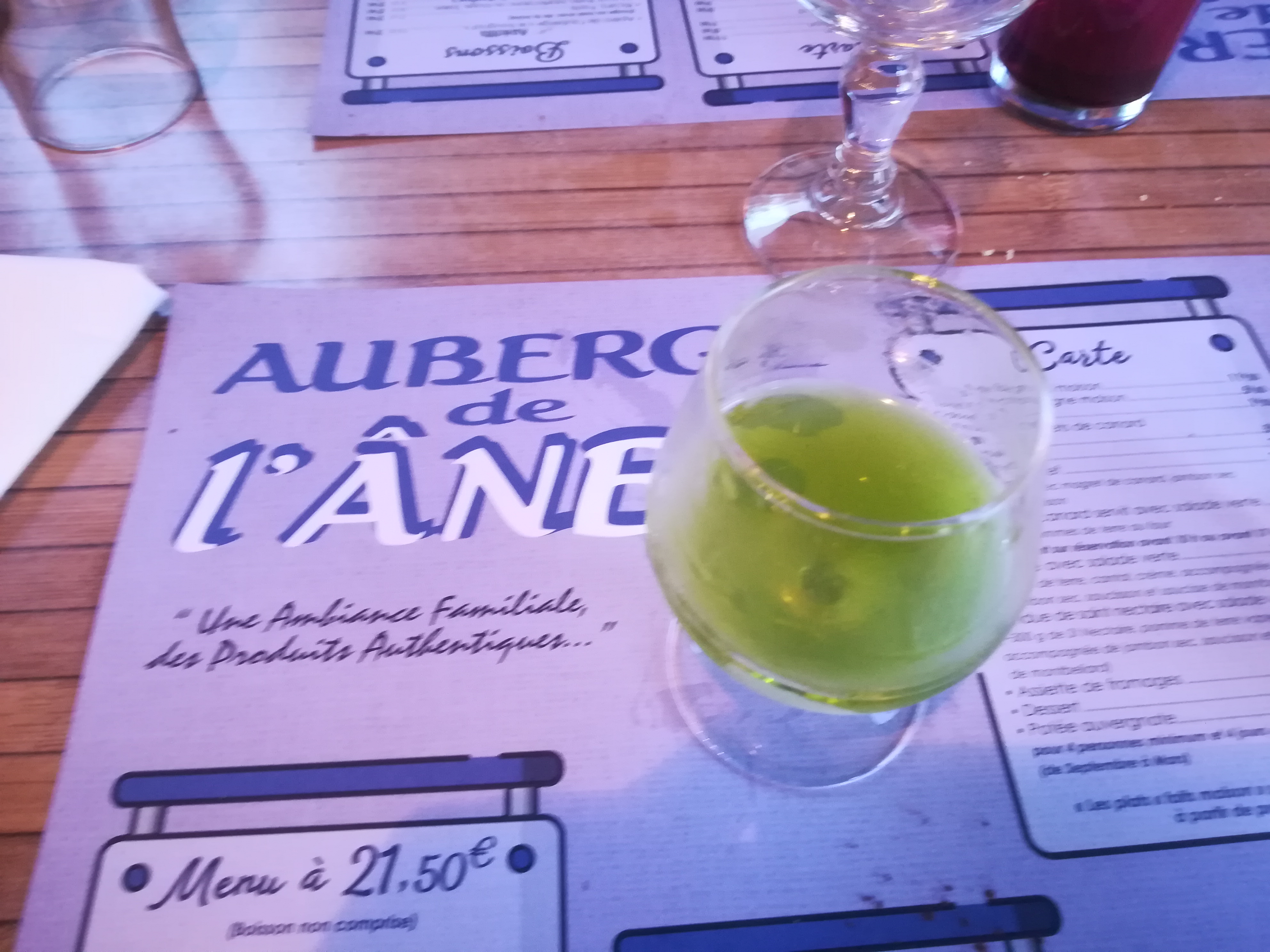 Nous sommes venus dîner dans cette Auberge des Ânes, franchement c'était à tombé!!! Personnellement j'ai pris une Truffade elle était exellente accompagnée d'une salade verte,de saucisson et jambon de pays, mousse aux chocolat en dessert le tout pour 16€ ce qui est très correcte😋😋😋 service très convivale. Je recommande les yeux fermés !!!