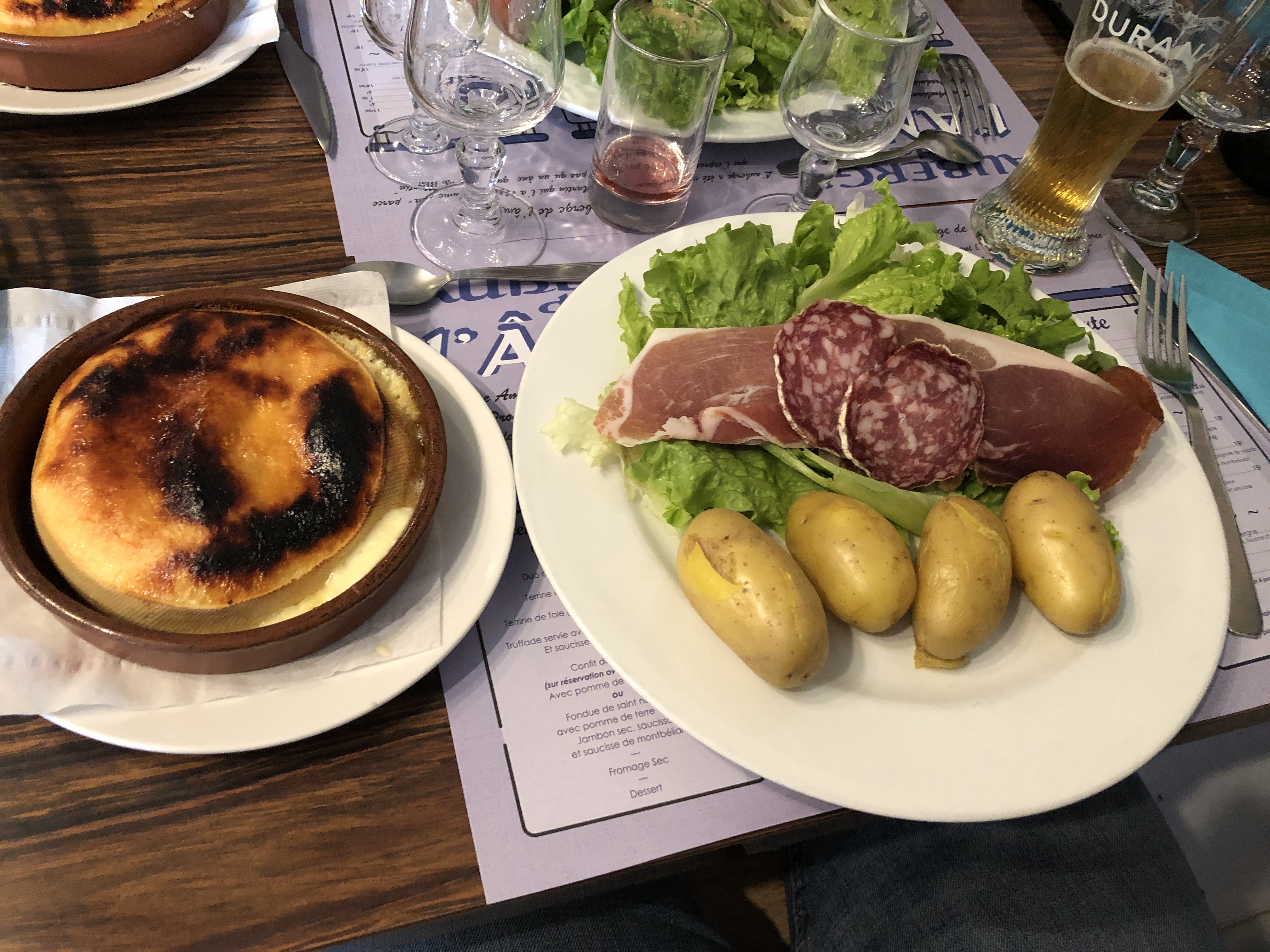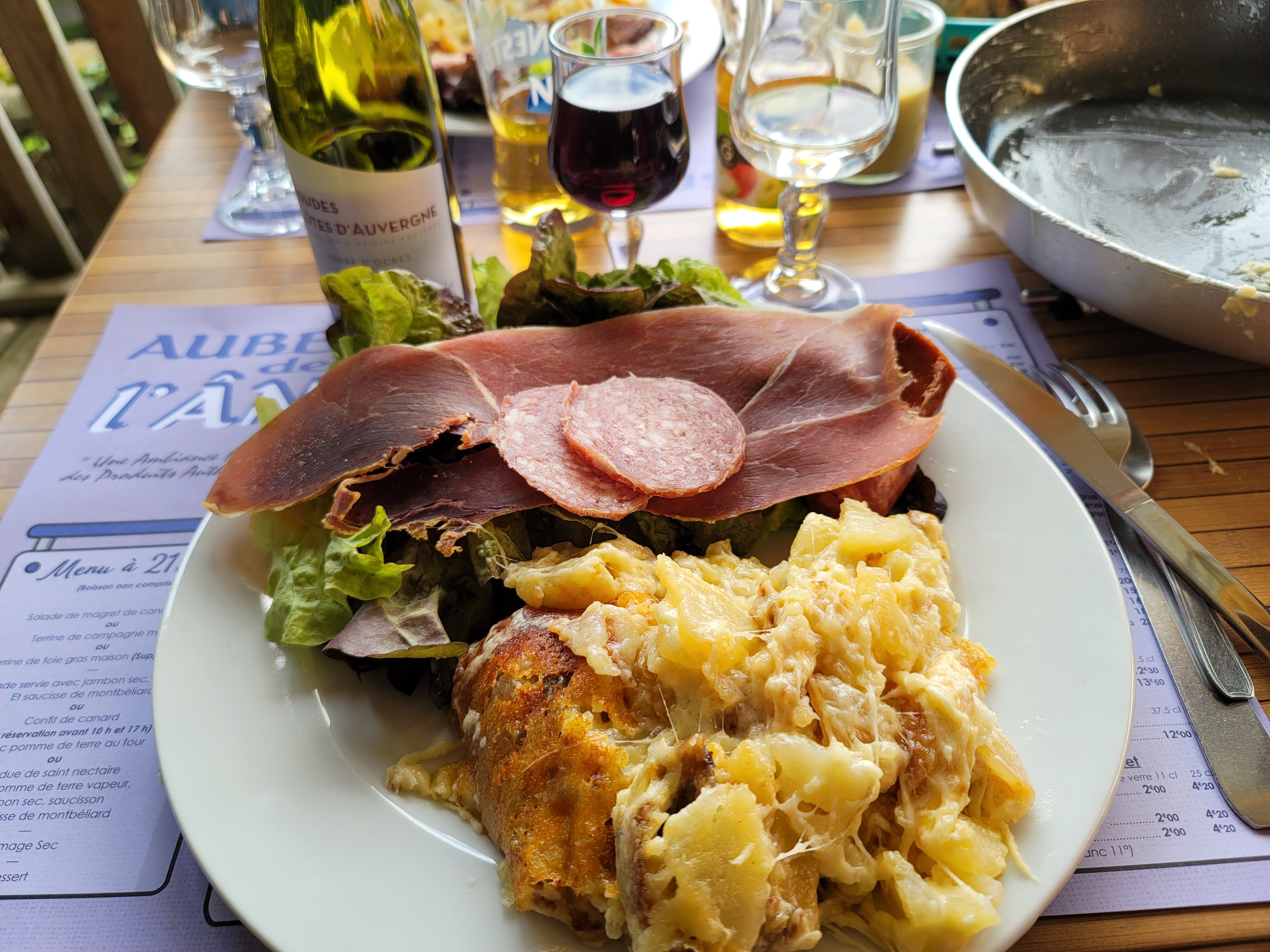 Déçue un peu par la truffade car il y avait une saucisse fumée. Dommage il ne faisait pas beau donc on a mangé a l intérieur. Un peu déçue par le cadre..