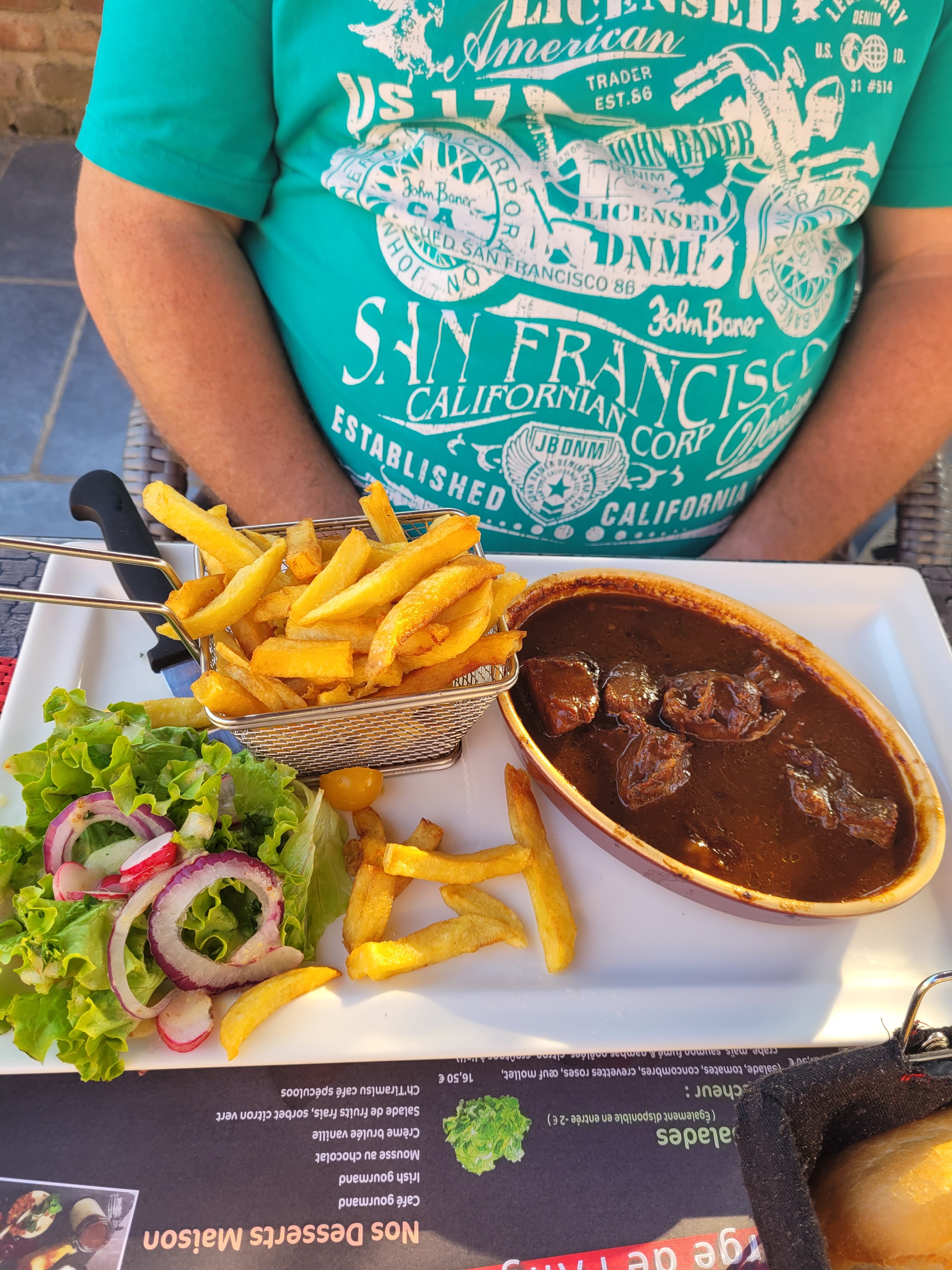 Lieu sympa. Frites correctes. Service rapide. Personnel pas forcément très aimable, et masque mal porté. Certains morceaux de viande de la carbonnade avaient un goût vraiment bizarre... Aucun geste de la part du personnel suite à cette remontée d'information. Offrir ne serait-ce que le café ? Au contraire, pas un mot d'excuse, aucune explication, pas un merci, ni un sourire, qui auraient pu améliorer cette expérience et éviter ce commentaire. Une erreur peut arriver mais le tout est de savoir réagir/faire un geste. Bref déçu du comportement des serveurs et surtout d'avoir payé plein pot un plat qui avait un goût louche et que je n'ai quasiment pas mangé.
