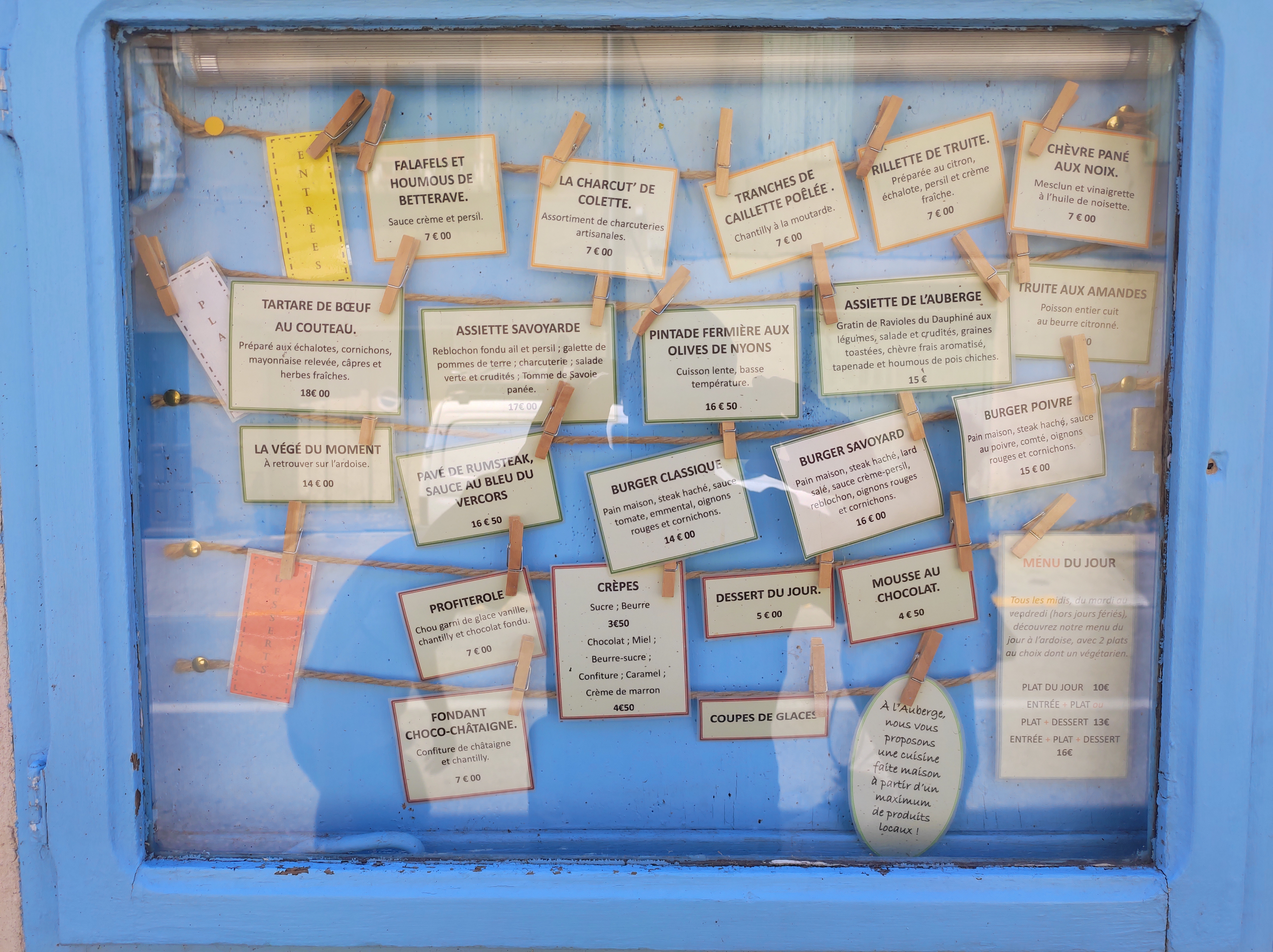 Par hasard, menu du jour affiché sur l’ardoise au bord de la route, parking juste à côté : un coup d’œil rapide aux avis sur Google : Pas déçus, accueil sympa, terrasse ombragée à l’arrière, tarifs très corrects, assiettes copieuses… une bonne adresse 😋