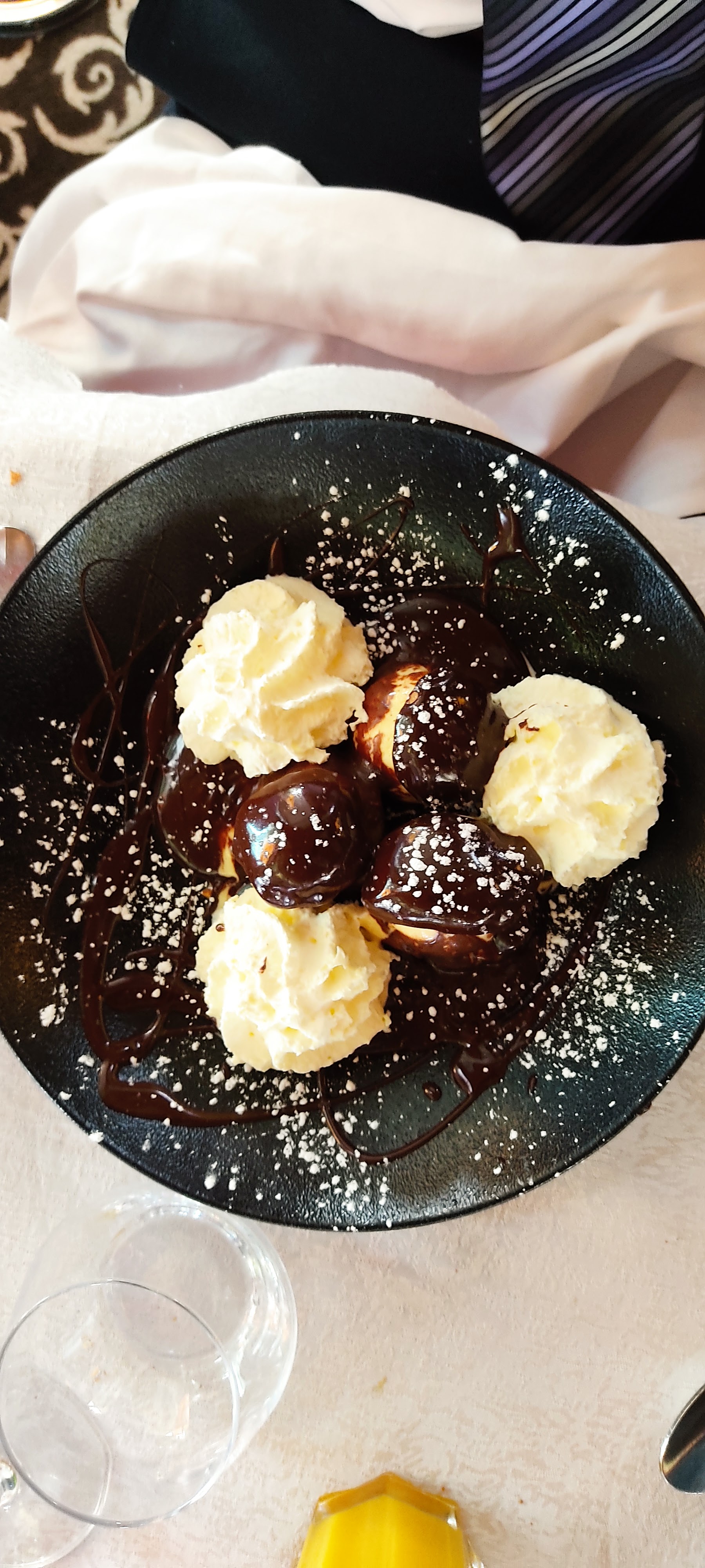 Bien mangé et très bien servis personnel au top ! Les profiteroles excellentes et très copieuses .