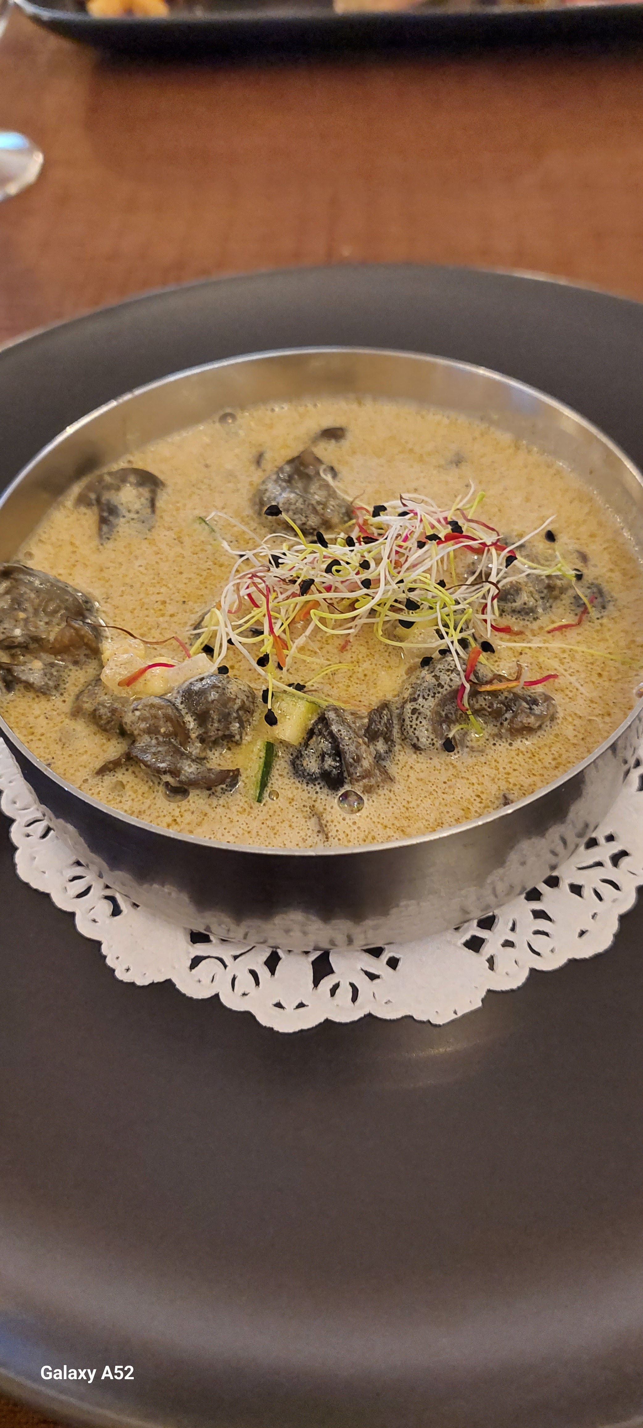 Resto très bon, intérieur magnifique. Le seul petit regret est que nous avons eu les entrées (dont une chaude) pratiquement en même temps que l apéritif.