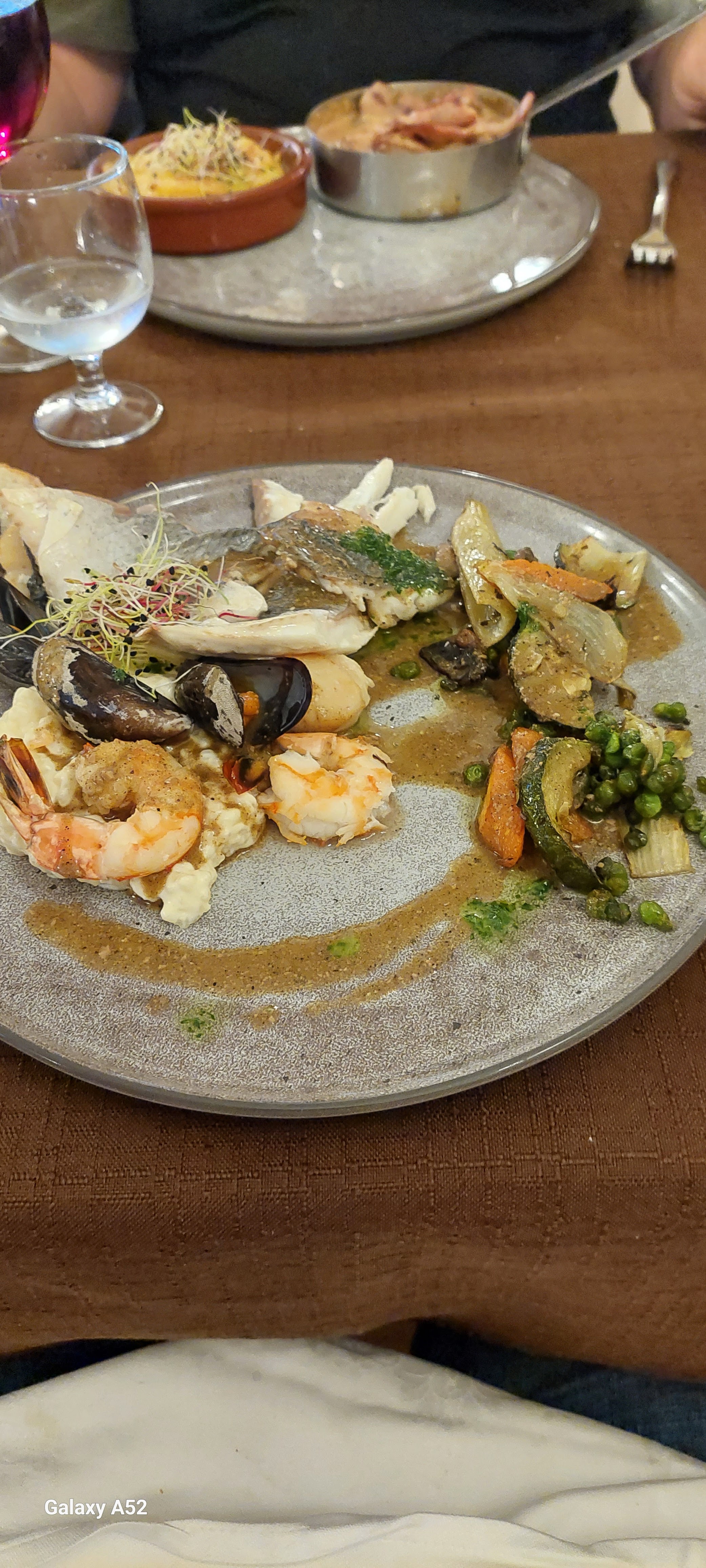 Déjeuner en tête à tête avec mon mari. Très bon repas, copieux et goûtu. Personnel attentif sans être intrusif. Tout était bien.