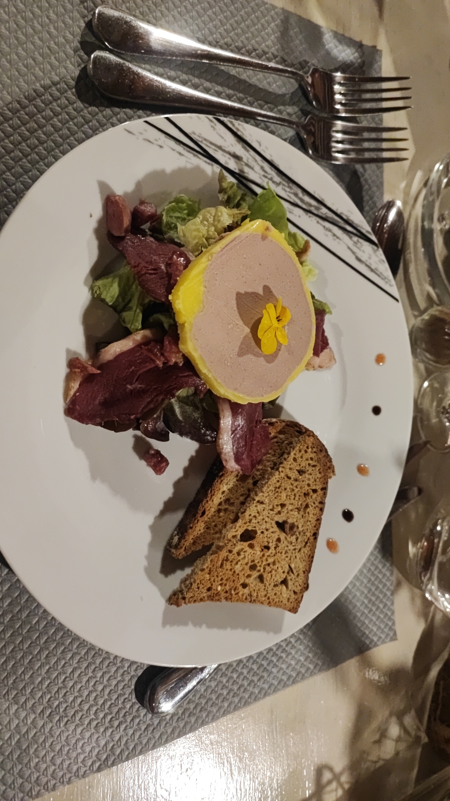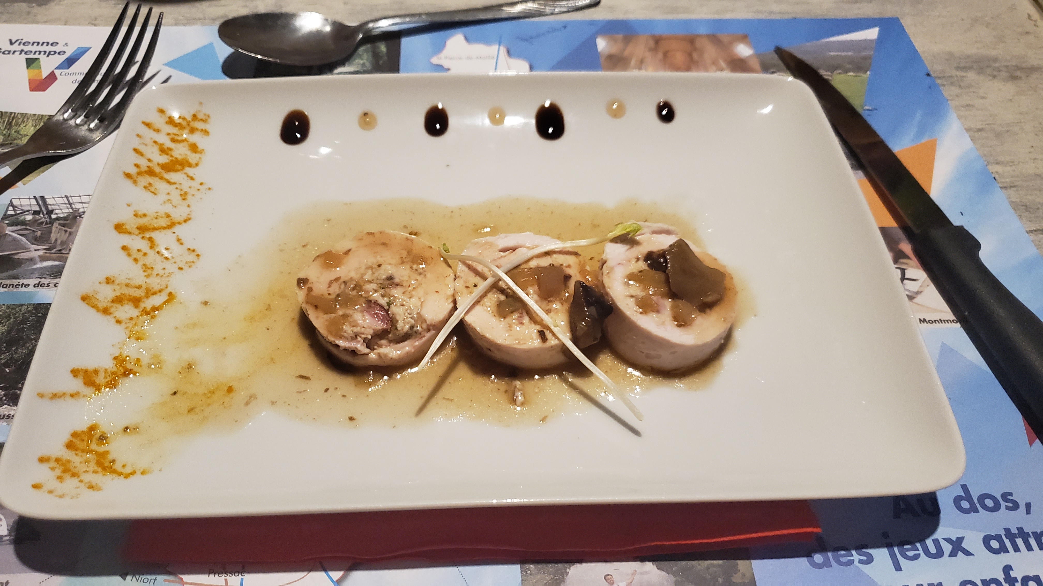 Bon accueil, mais plats décevants, marbré de foie gras insipide et rempli de graisse, plats de résistance trop gras et dessert qui manque de sucre!