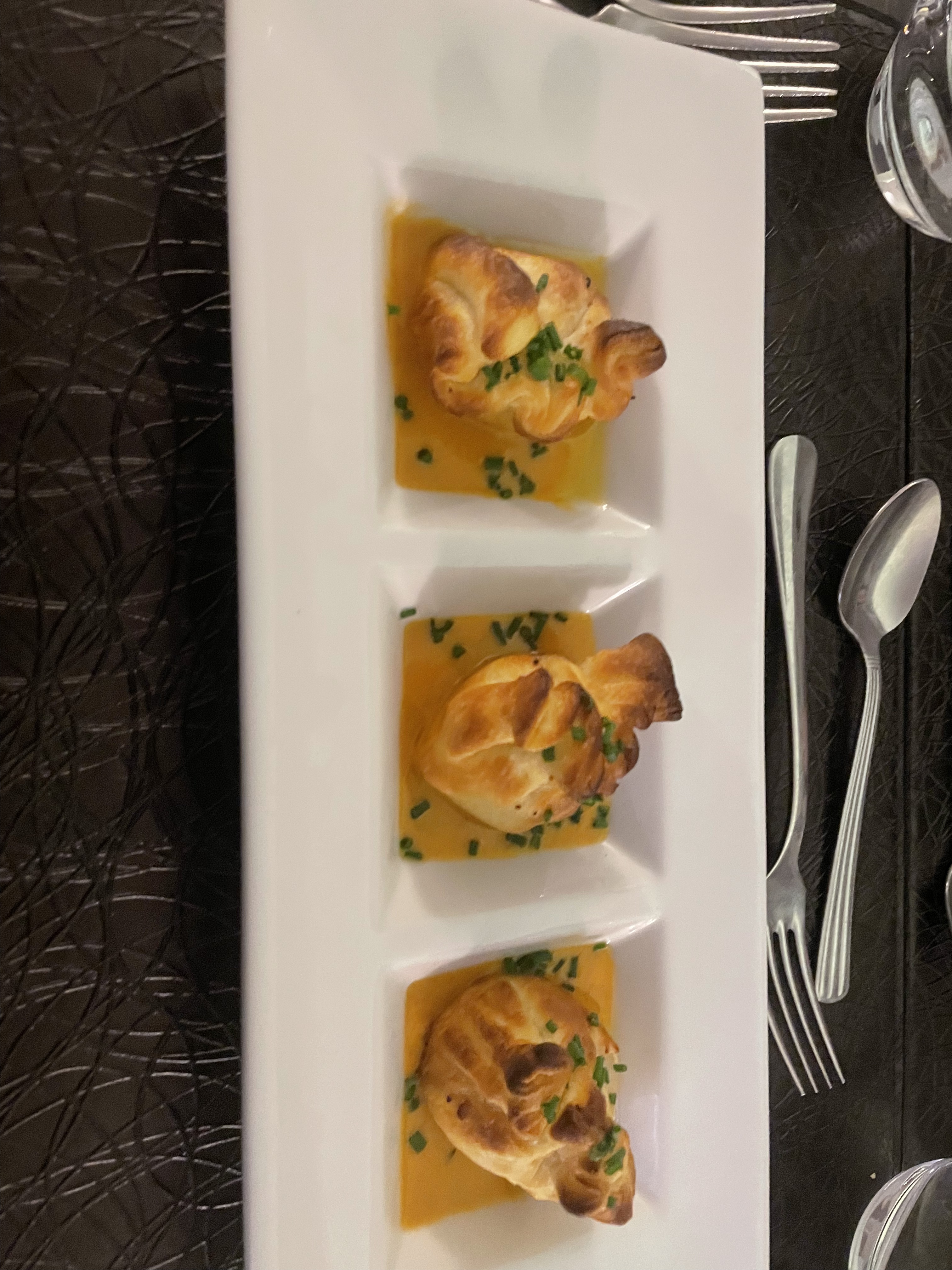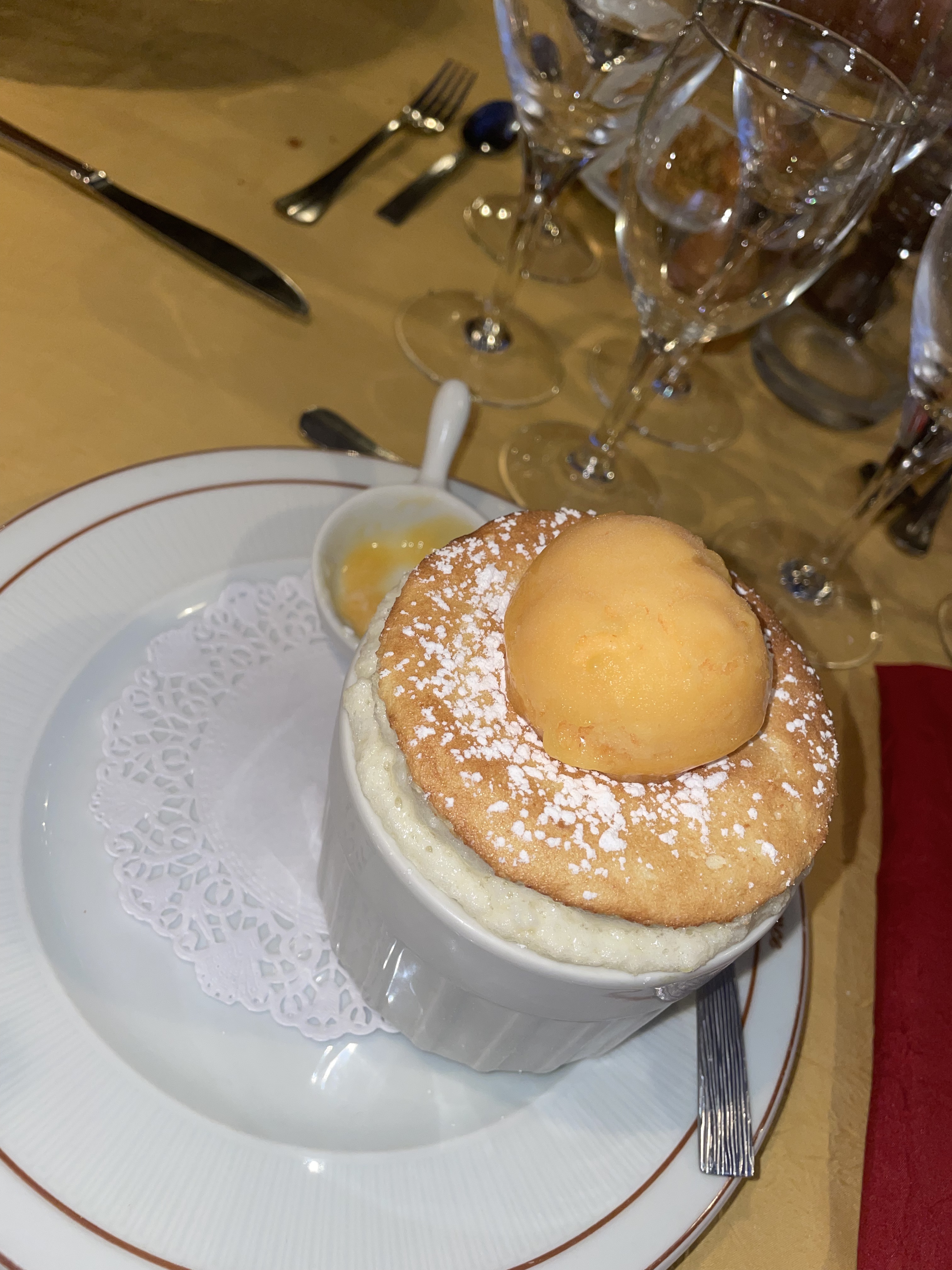 Pour une 1ère fois nous sommes ravis Tout était parfait... Le dessert une tuerie soufflé grand marnier glace mandarine N hésitez pas a y aller les yeux fermés.