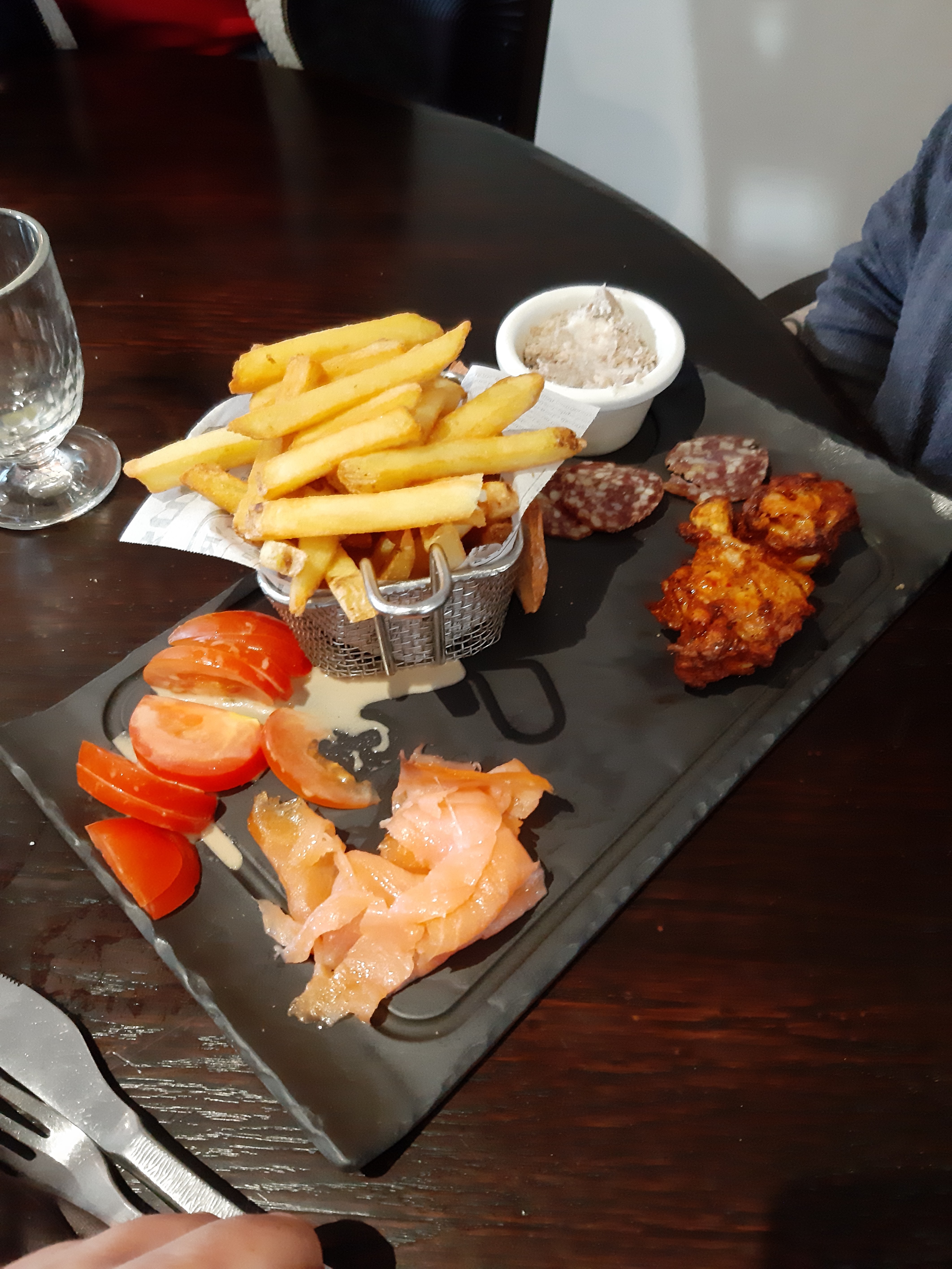 planche terre mer a déconseillé bulot fade et peu cuit saumon fumé fade accras de morue pas cuites a part le fois gras et les frites c'est tout ce qu'il y avait de bien 28euro c'est cher pour une qualité médiocre.c'est une deuxième fois très décevante .