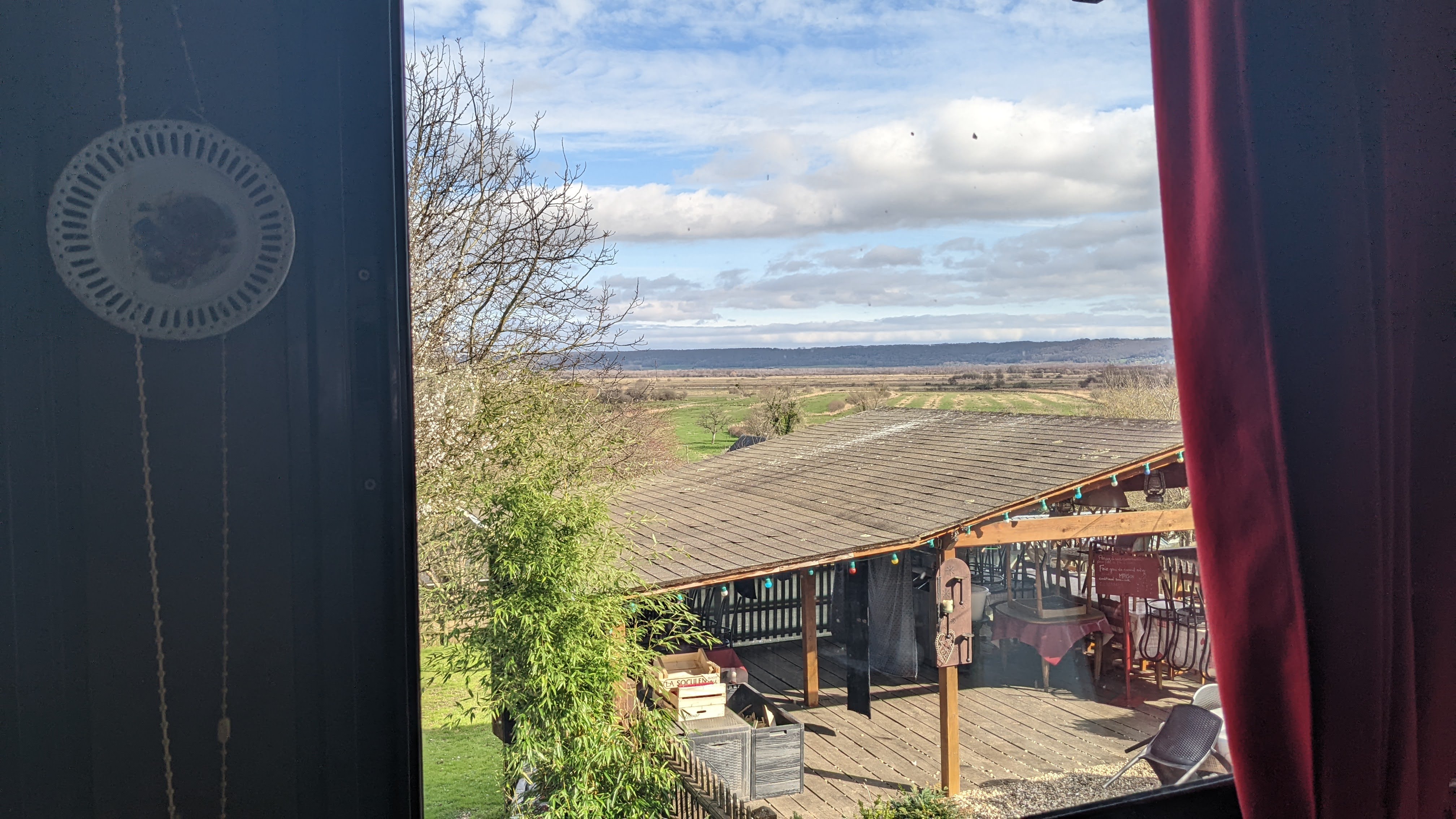Un endroit agréable pour prendre un verre vue sur le marais vernier. accueil agréable la terrasse aurait eu besoin d'un peu de nettoyage !