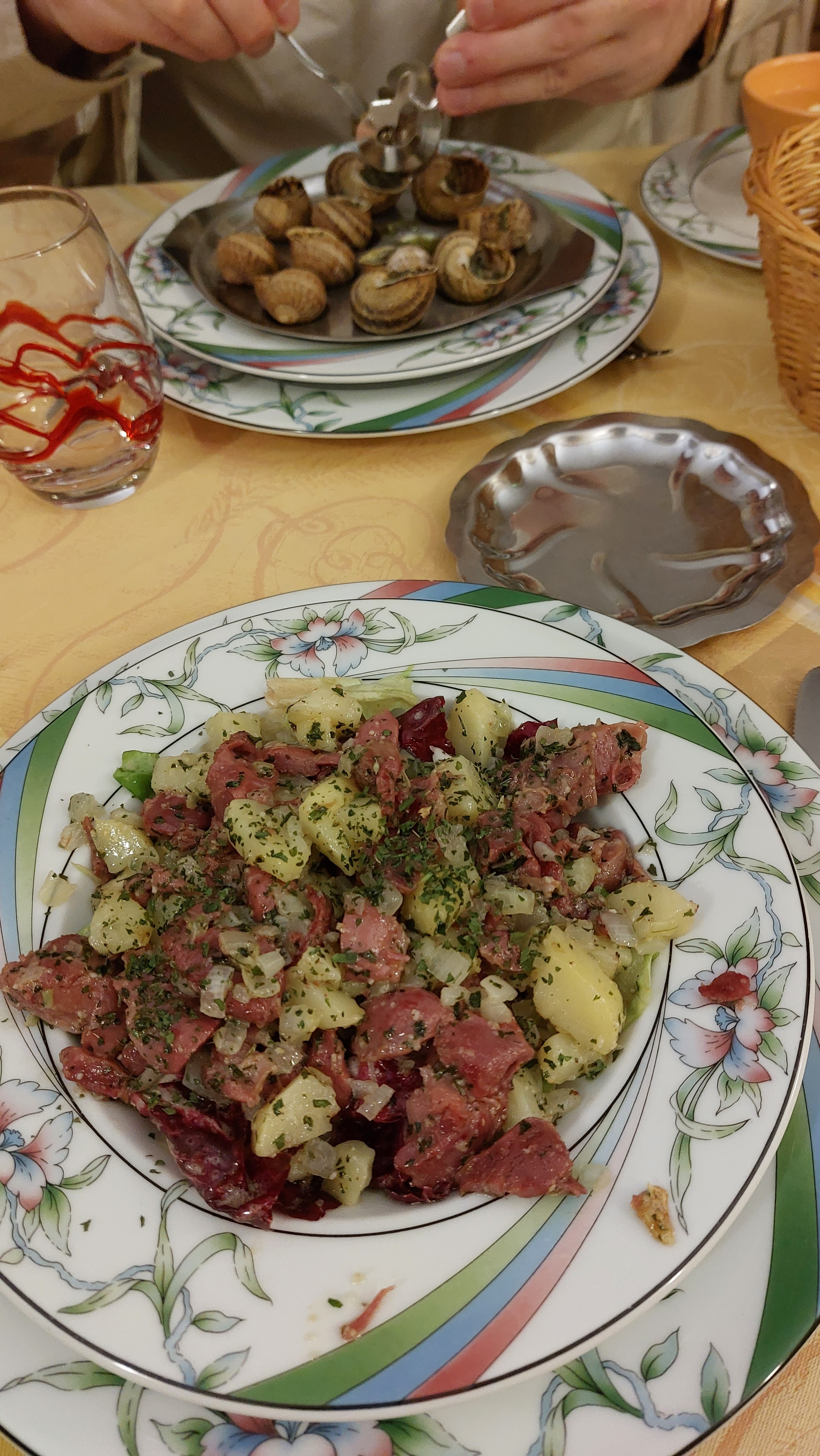 Exactement ce que nous recherchions : authentique, simple et franc, un endroit où les gens de la région viennent. Autant la serveuse que la cuisinière sont très sympathiques. Le restaurant est à l’intérieur un peu démodé mais l’essentiel est la cuisine. Nous avons mangé sur la terrasse, ce qui était très agréable et nos chiens étaient les bienvenus. Ils ont même reçu de l'eau sans que nous le demandions. Des prix de menu plus que corrects, par exemple: jambon en entrée, entrecôte avec frites et dessert pour moins de € 20.- Pour 4 personnes, nous avons payé € 100.- y compris bières, vin et café. Nous le recommandons fortement.