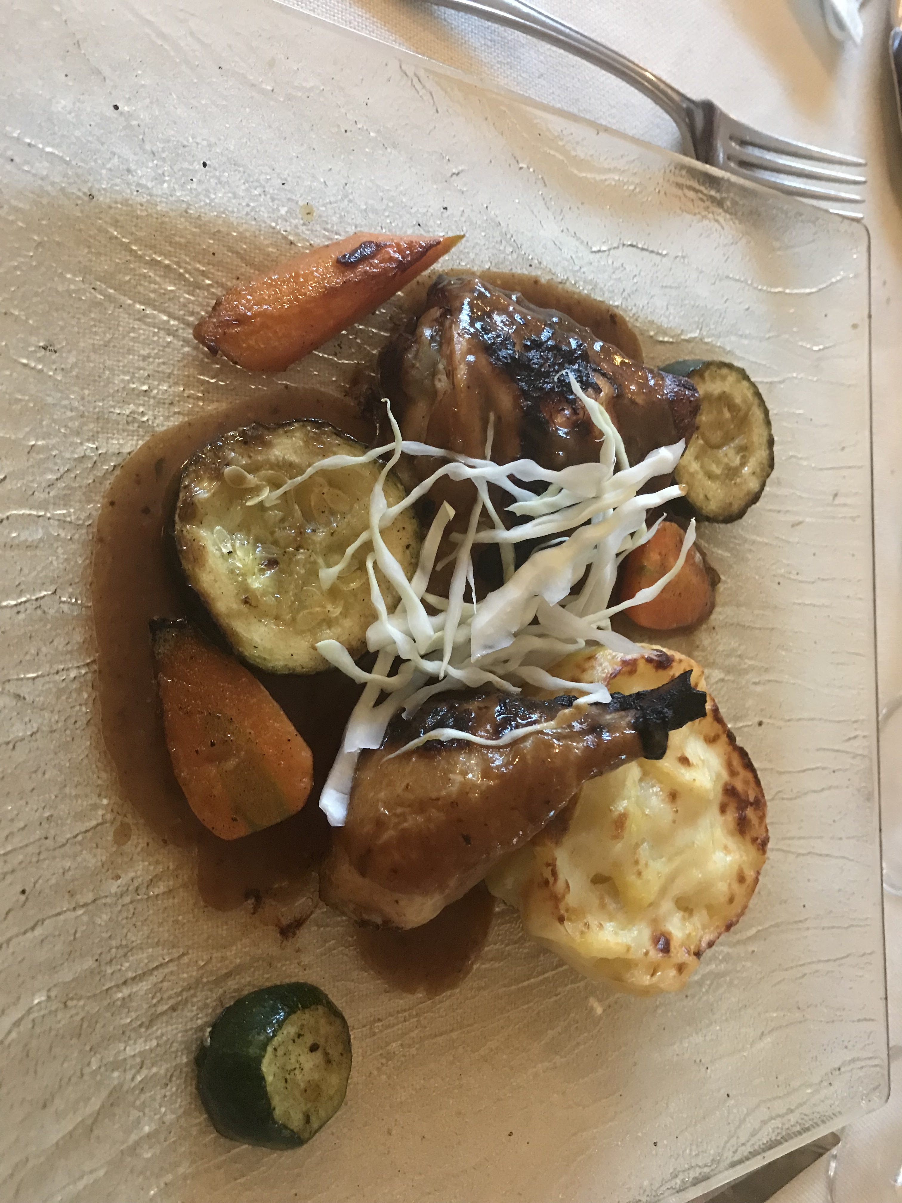On nous a offert un menu du chef. Quantités adaptées. Tres bon et plus faim en fin de repas. Merci