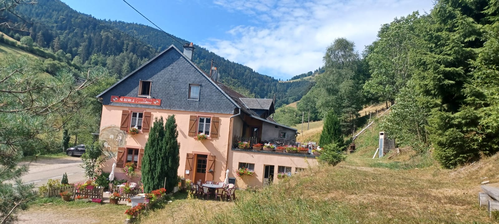 Une auberge comme on les aime. Idéalement placée sur la route des crêtes Alsacienne, avec 2 grands parking, idéal pour notre groupe de 8 motards. Martine et son équipe ont été adorables malgré notre retard d'une bonne demi-heure... On y mange très bien et les prix sont raisonnables, un grand merci !!