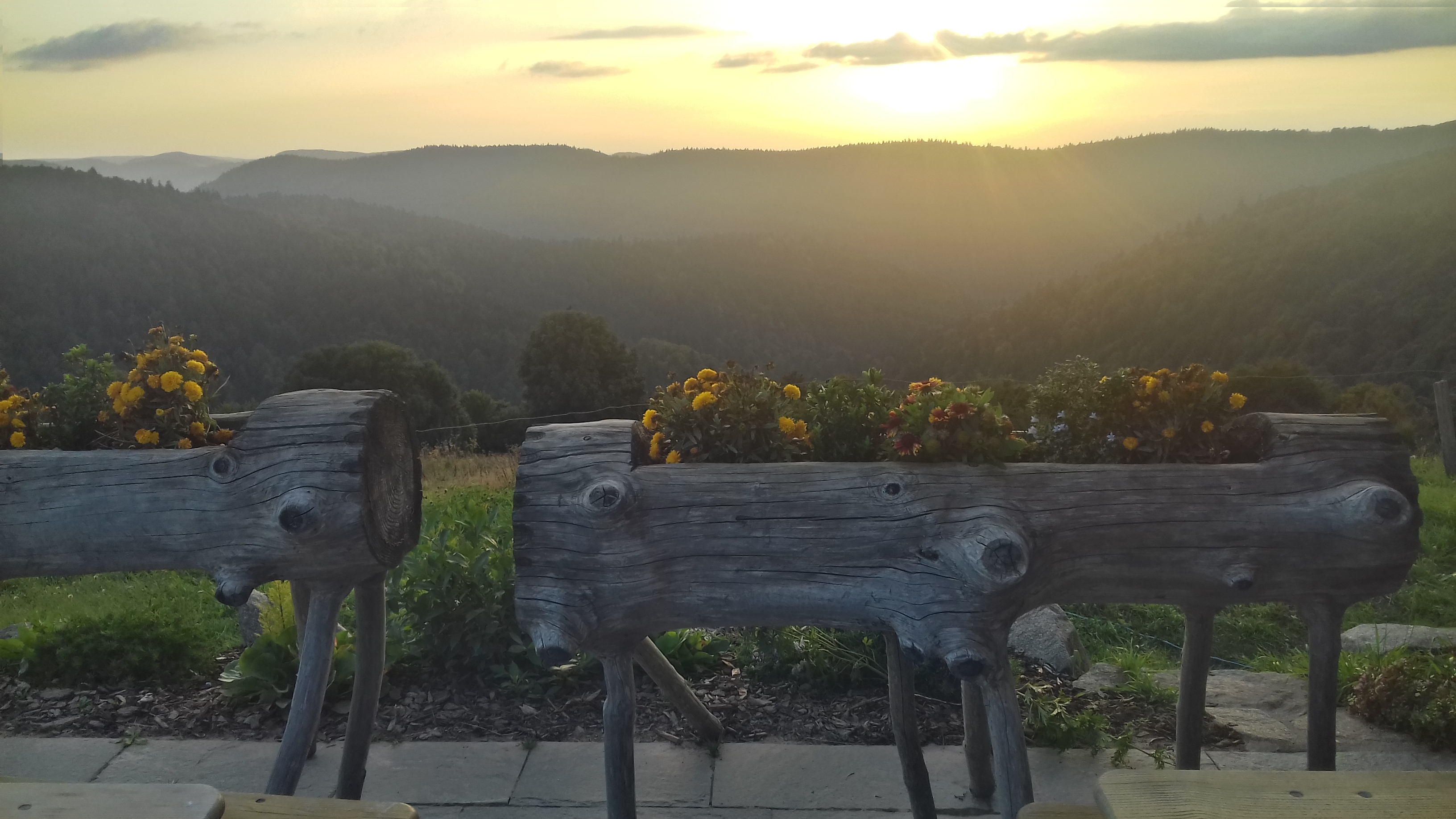 J'ai adoré manger sur la terrasse, au son des cloches des belles vosgiennes qui broutaient dans le pré. Magnifique vue également.
