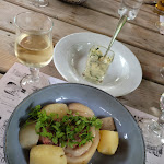 Nous avions réservé avant de partir en randonnée, et nous avons eu raison car c'était plein! Super installation en extérieur, avec barnums pour protéger de la pluie, et mesure d'hygiène et de distanciation strictement respectées. Nous avons eu l'impression que tout le monde était aux petits soins, super attentif, efficace et souriant, et en plus le repas était absolument délicieux !