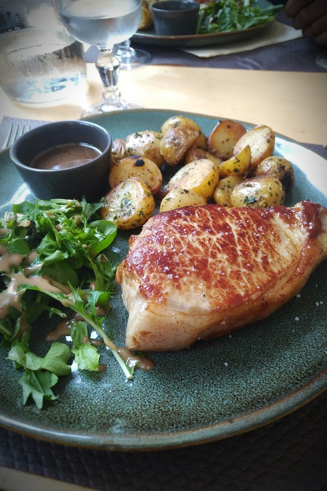 Ambiance sympa dans un milieu splendide. Dîner excellent. Un must... La côte de porc, sa sauce et les pommes grenailles. Merci
