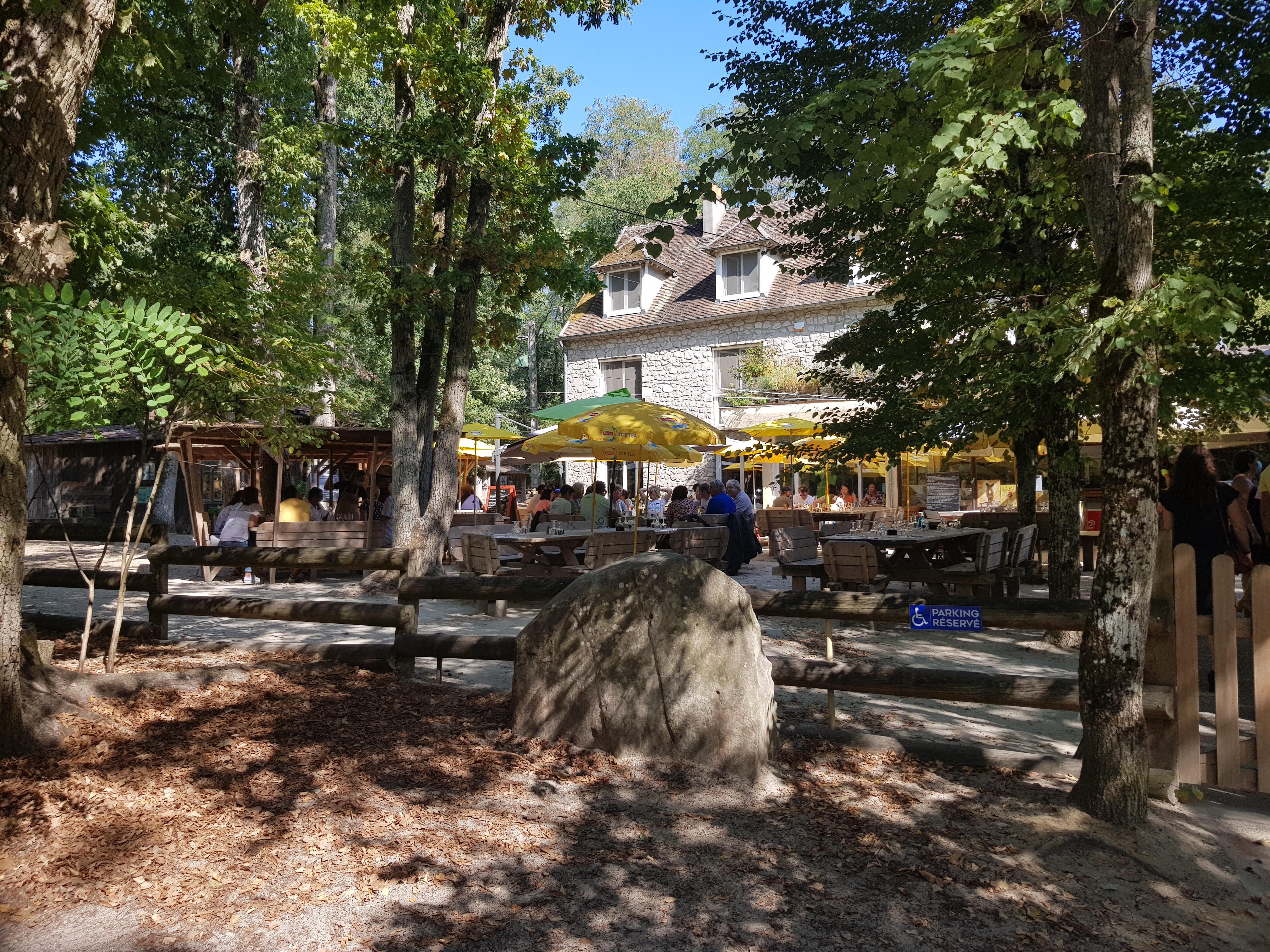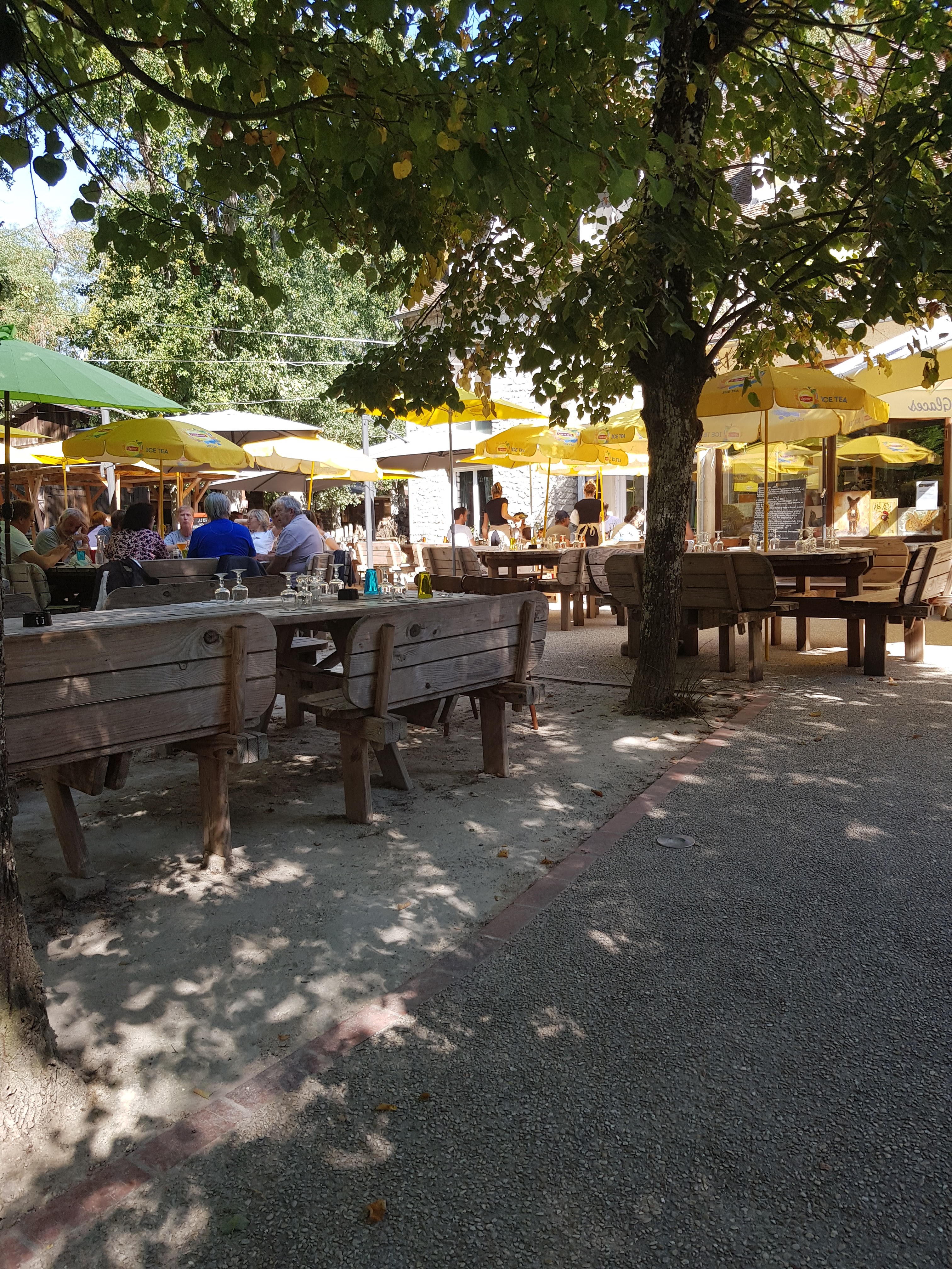 Sympa car au bon milieu de la forêt, une superbe terrasse pour profiter du soleil. La nourriture est plutôt bonne même s'il faut savoir se montrer patient car il y a beaucoup de monde! Il vaut mieux réserver ou passer après les heures de fréquentation le week-end.
