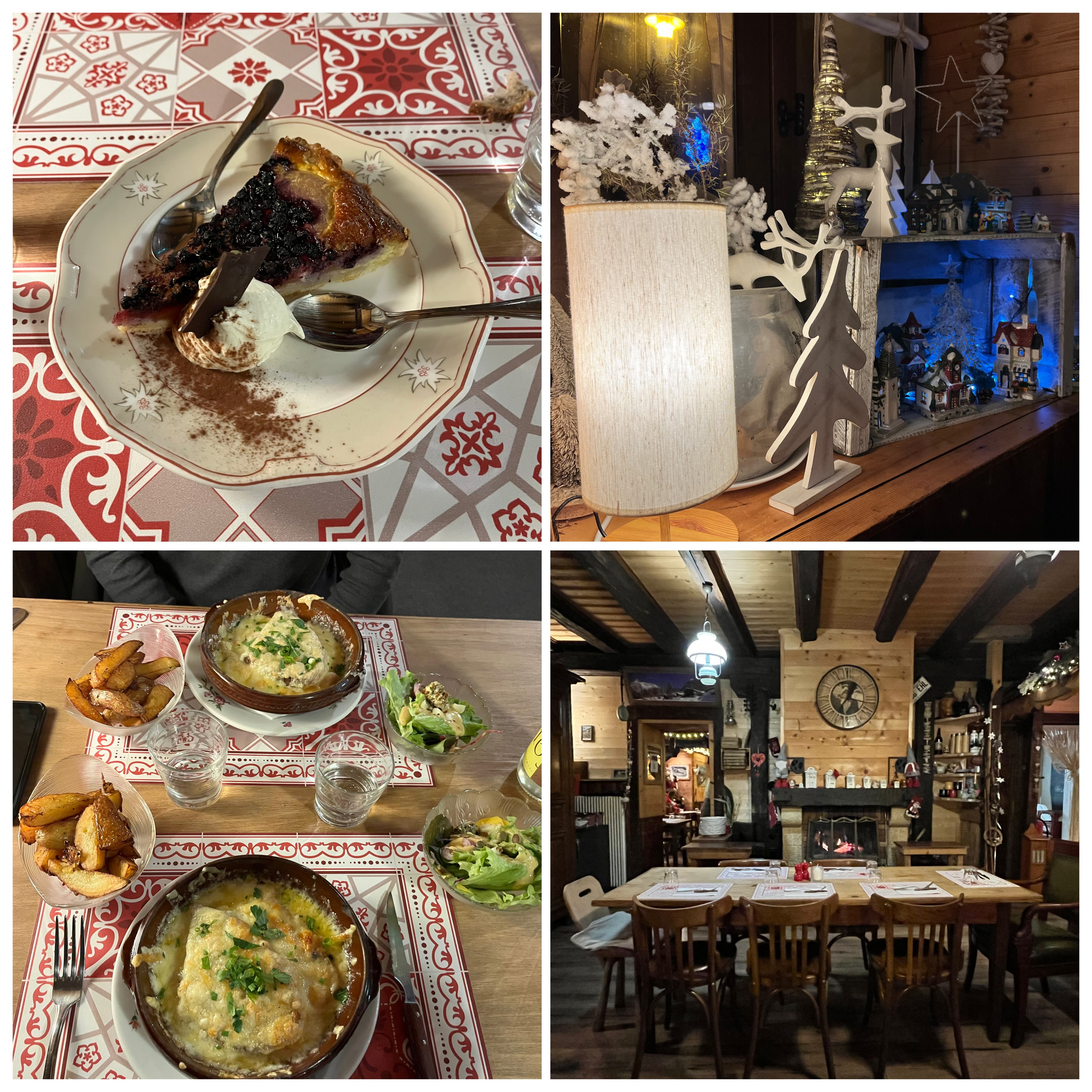 Belle découverte repas copieux et très bon de l entrée au désert. Merci à Pierre pour l excellent pâté en croûte maison et au reste de l équipe (cuisine et service) pour la tartiflette, la truite et raclette (avec ses poêlons originaux) la mousse au chocolat très léger un délice Tout était parfait merci
