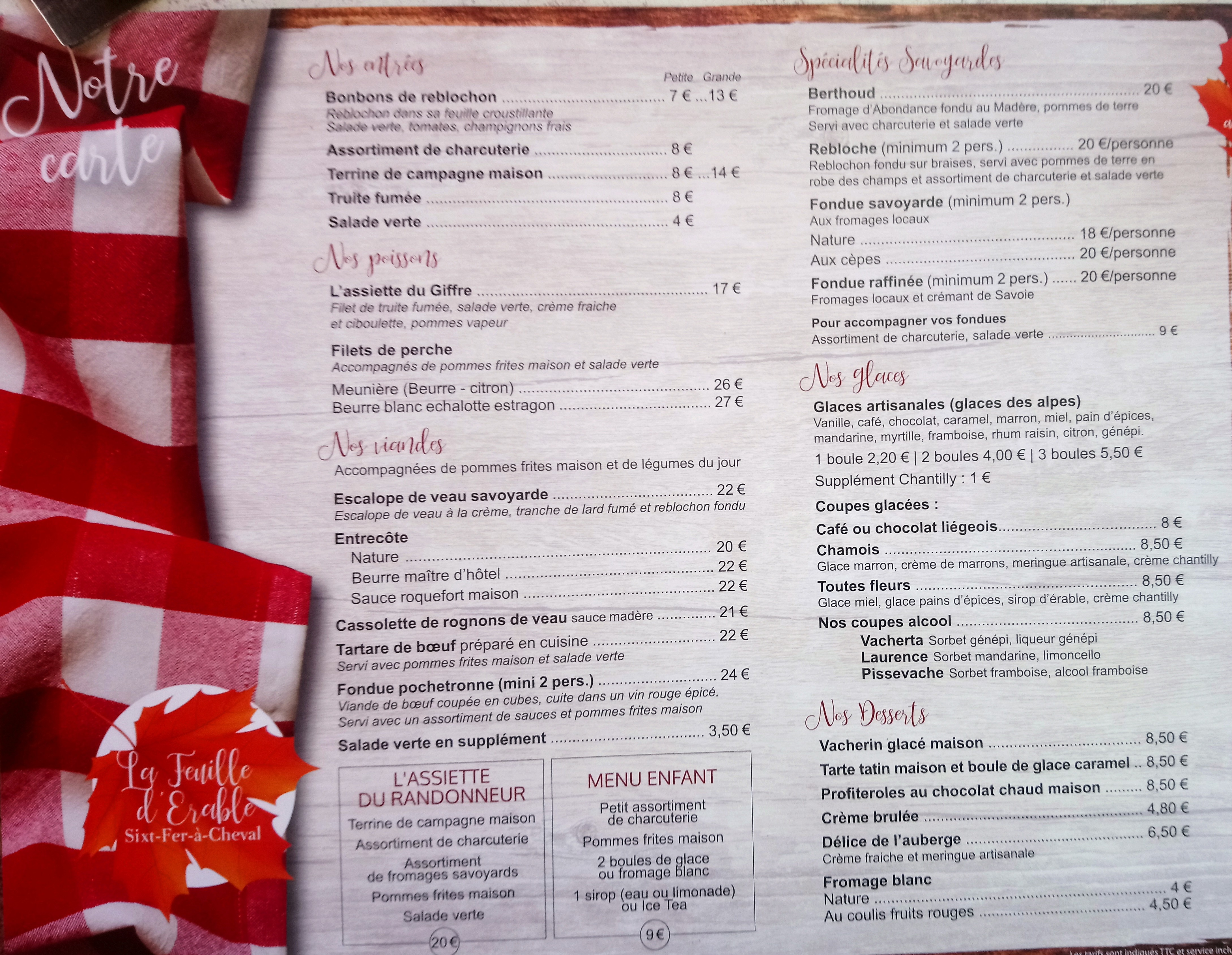 Toute la vallée m’a conseillé de venir manger à la Feuille d’Erable pour manger savoyard et j’ai compris pourquoi ! La nourriture est excellente, soignée et le service est impeccable. S’ajoute à cela, un lieu très chaleureux qui nous donne l’impression de manger dans le chalet d’un.e ami.e ! Je recommande !