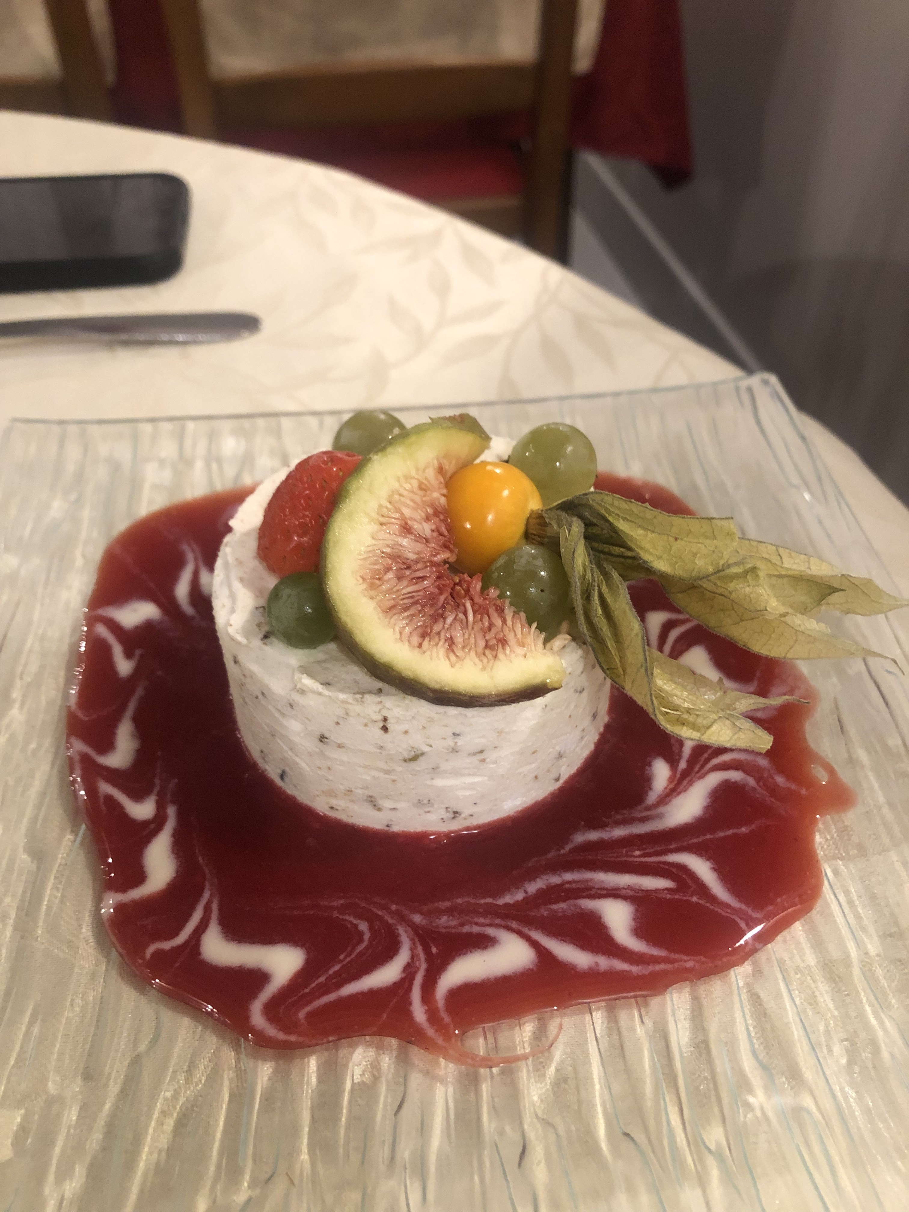 Pas de la grande cuisine, pâtes de super marché, mousse de fruits rouges avec fruits rouges décongelés. Accueil chaleureux et assiette copieuse.