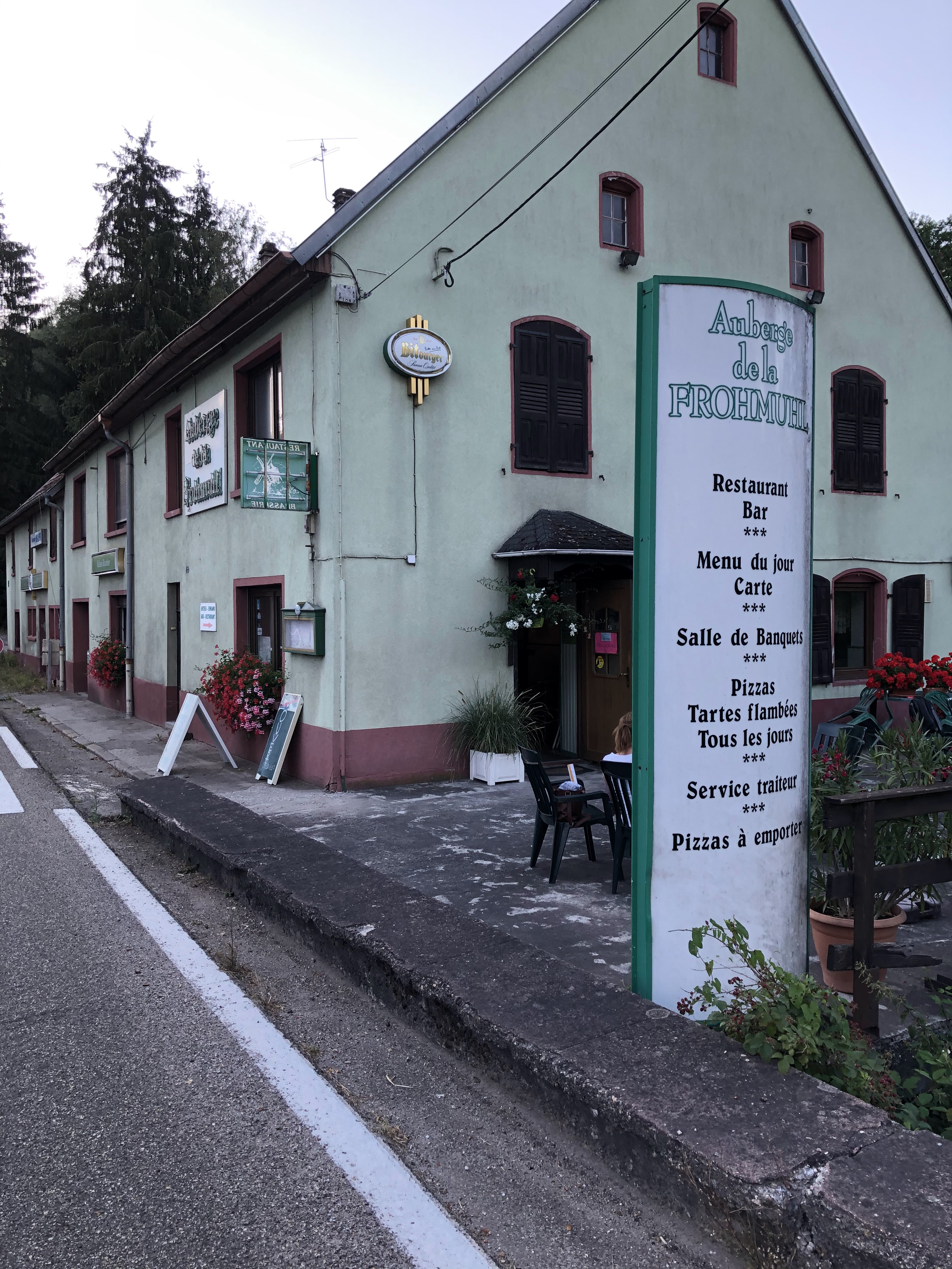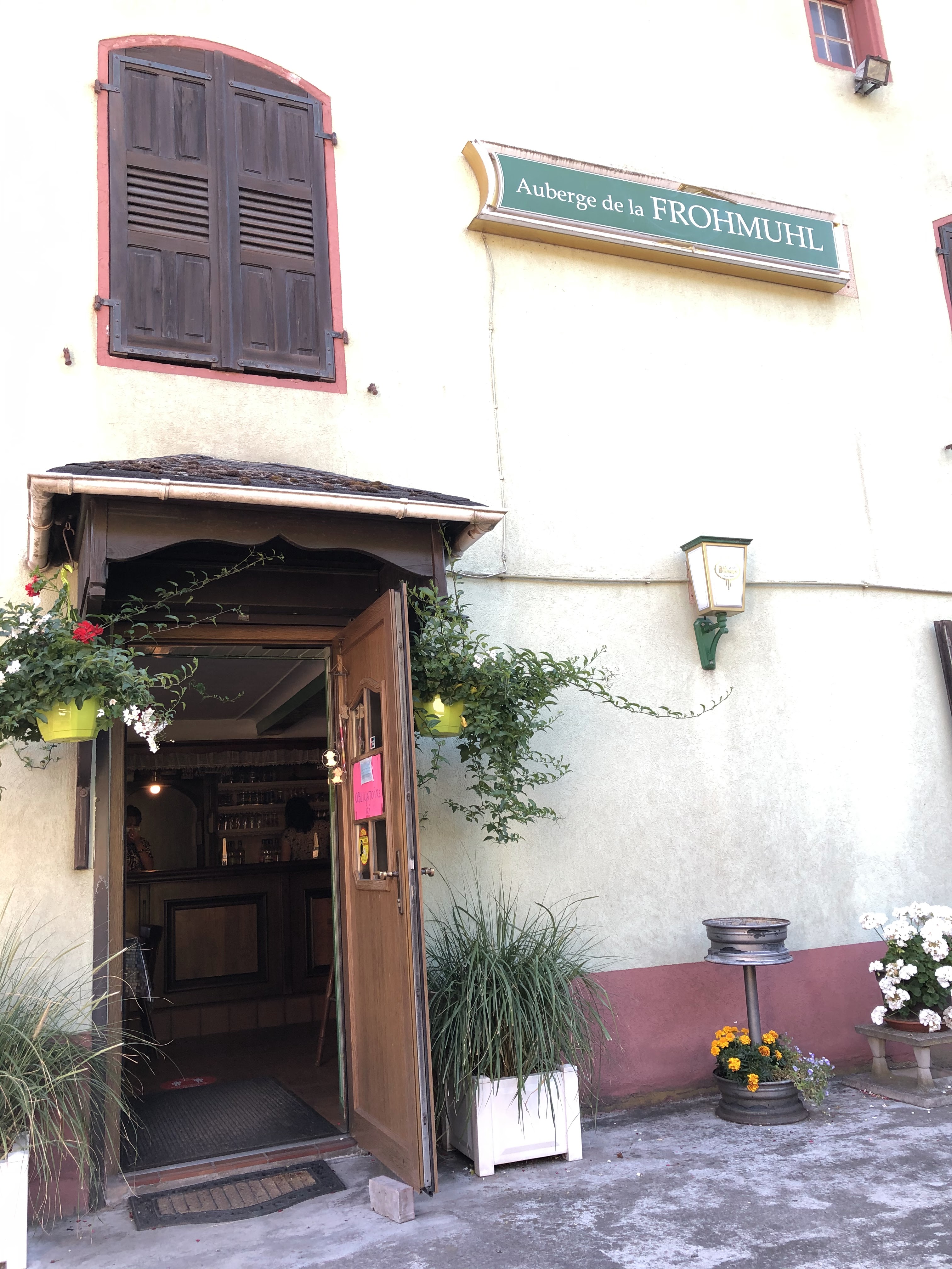Nous avons dégusté du vin Elsache et de la bière allemande ici, avec des flammkuchen spéciales du chef et une omelette au gruyère et aux champignons en début de soirée tout en essayant de profiter du dernier soleil dehors sur la terrasse. J'ai trouvé la nourriture bien préparée et savoureuse, même si je dois dire que la salade mériterait plus d'attention. L'emplacement de l'Auberge est quelque peu difficile, juste au coin d'une route de traverse, où les voitures traversent votre dîner. Le propriétaire était sympathique et parlait allemand et français comme on peut s'y attendre. Nous avons utilisé les toilettes qui étaient toutes propres et bien entretenues.