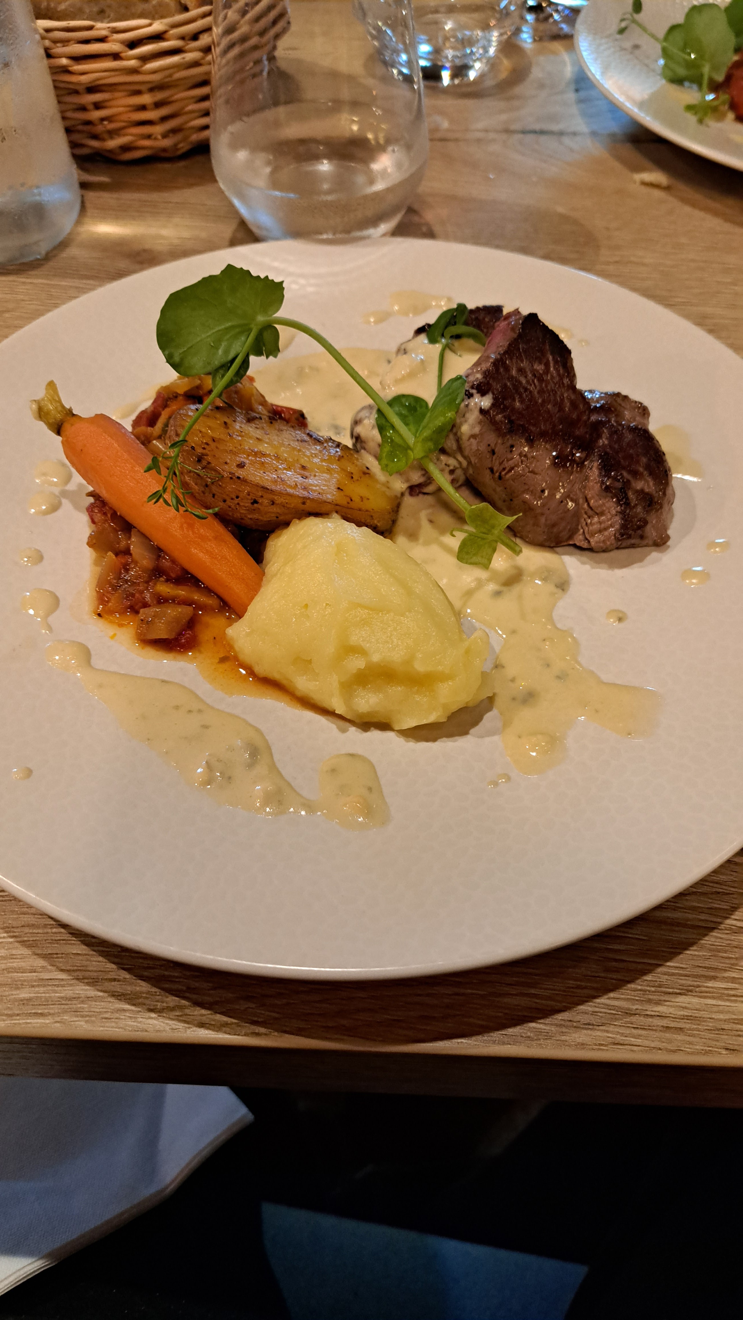 Un peu déçu… Le riz de veau aux girolles et le nougat glacé étaient très bons. La bière avec un verre froid est un détail appréciable 😀 Par contre le filet de bœuf Rossini n’ était pas tendre avec des nerfs. Pour moi ce n’était pas du filet. Pour un tel tarif je ne trouve pas ça cool.