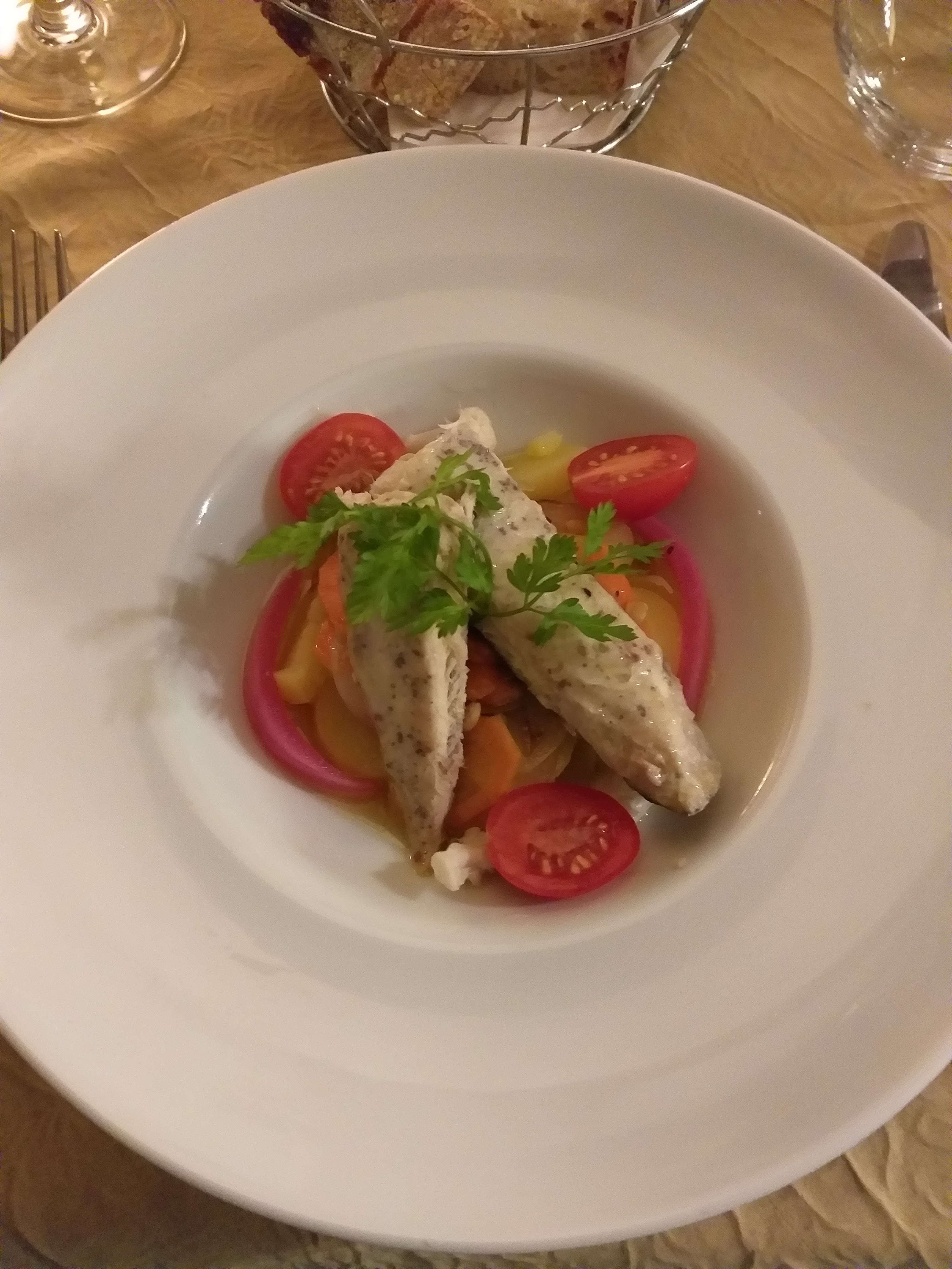 Nous avons apprécié l’ensemble du repas, belle présentation de l’assiette Bonne association des produits frais Adresse à recommander