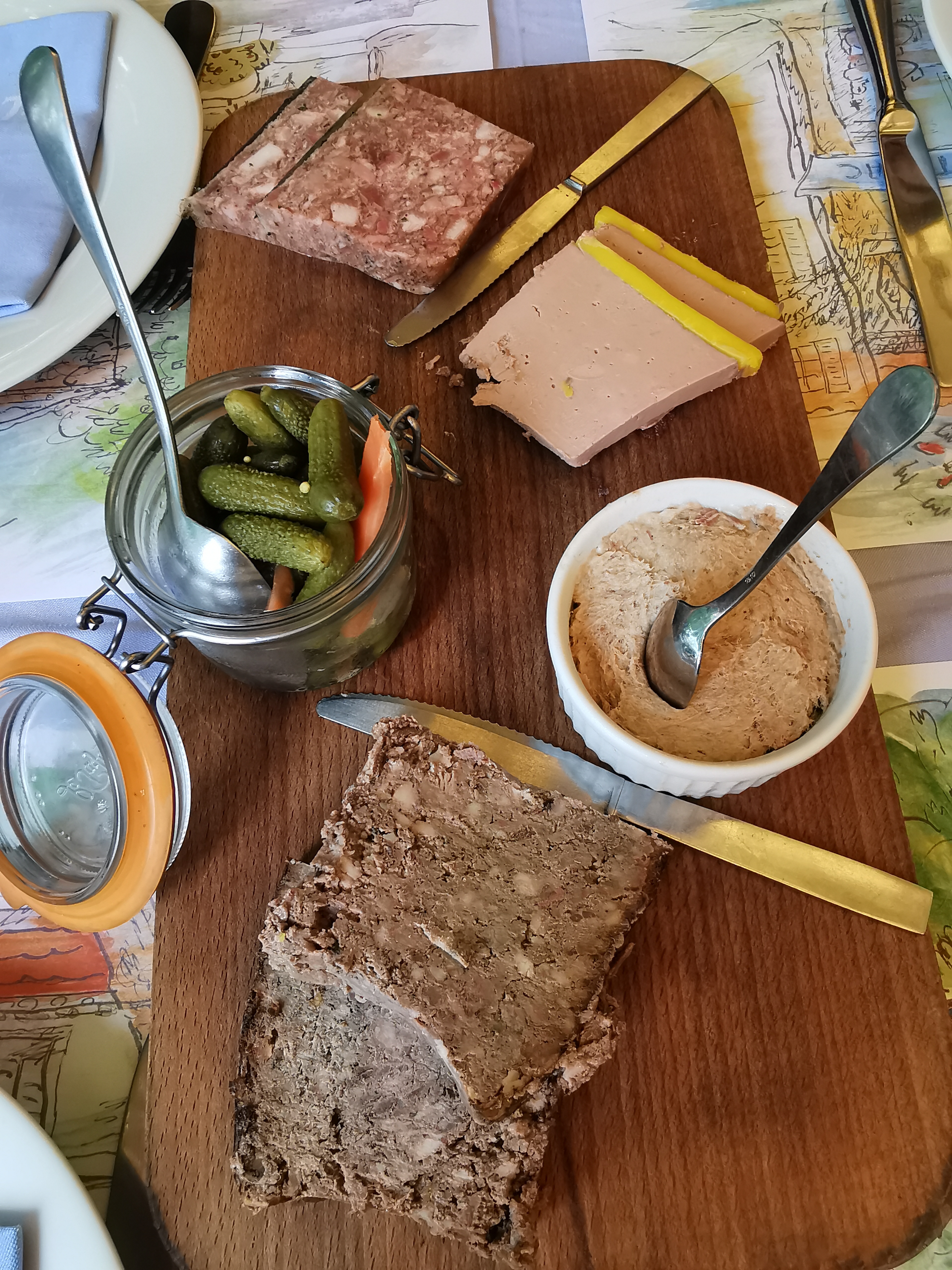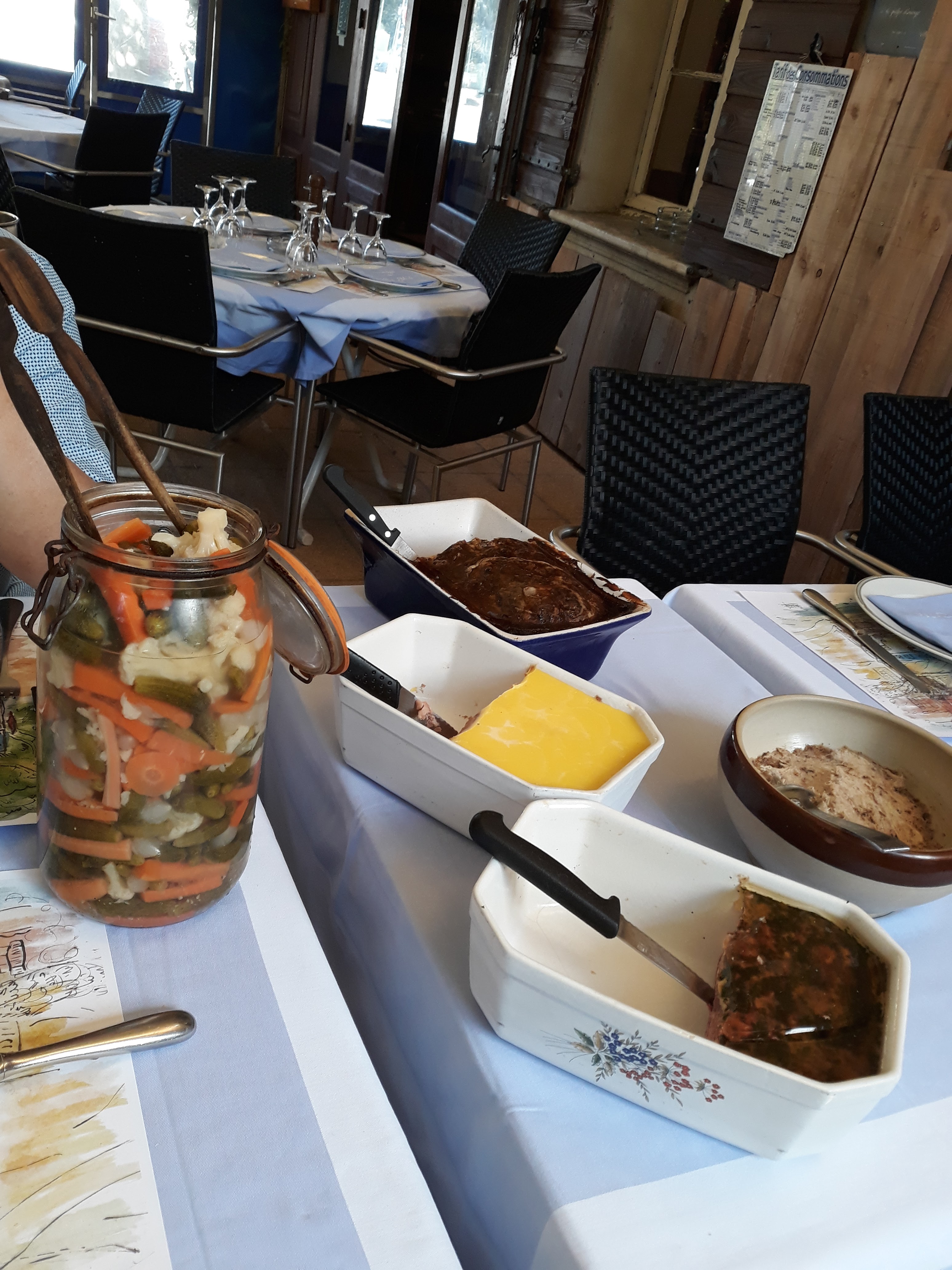 Un menu parfait depuis des années ! Vous devez absolument avoir faim, il y aura plus de nourriture que vous ne pourrez en gérer. Terrines très savoureuses dans différentes variantes en entrée. Puis deuxième entrée et plat au choix. Beaucoup de choix de fromages. Des desserts à table à emporter, un rêve ! Le voyage le plus long en vaut vraiment la peine...