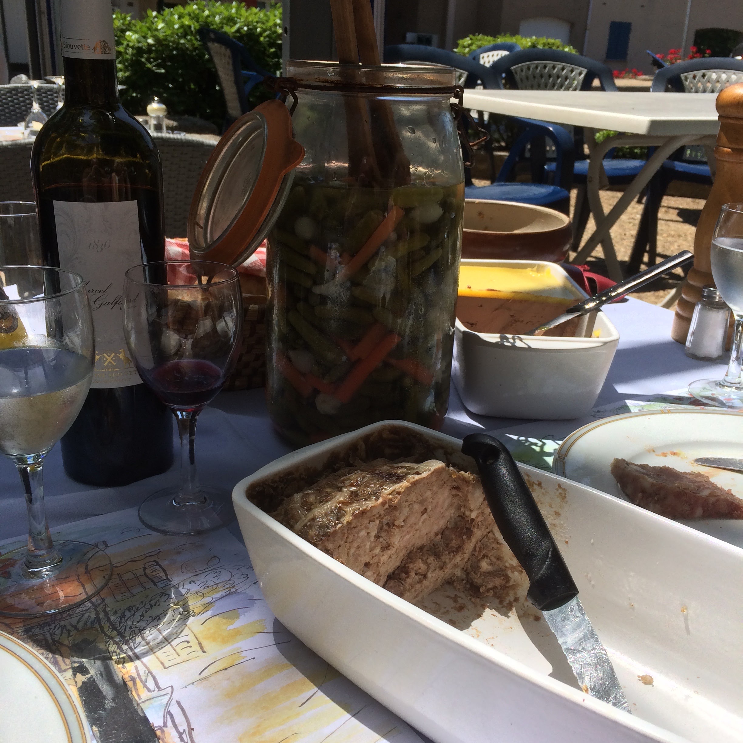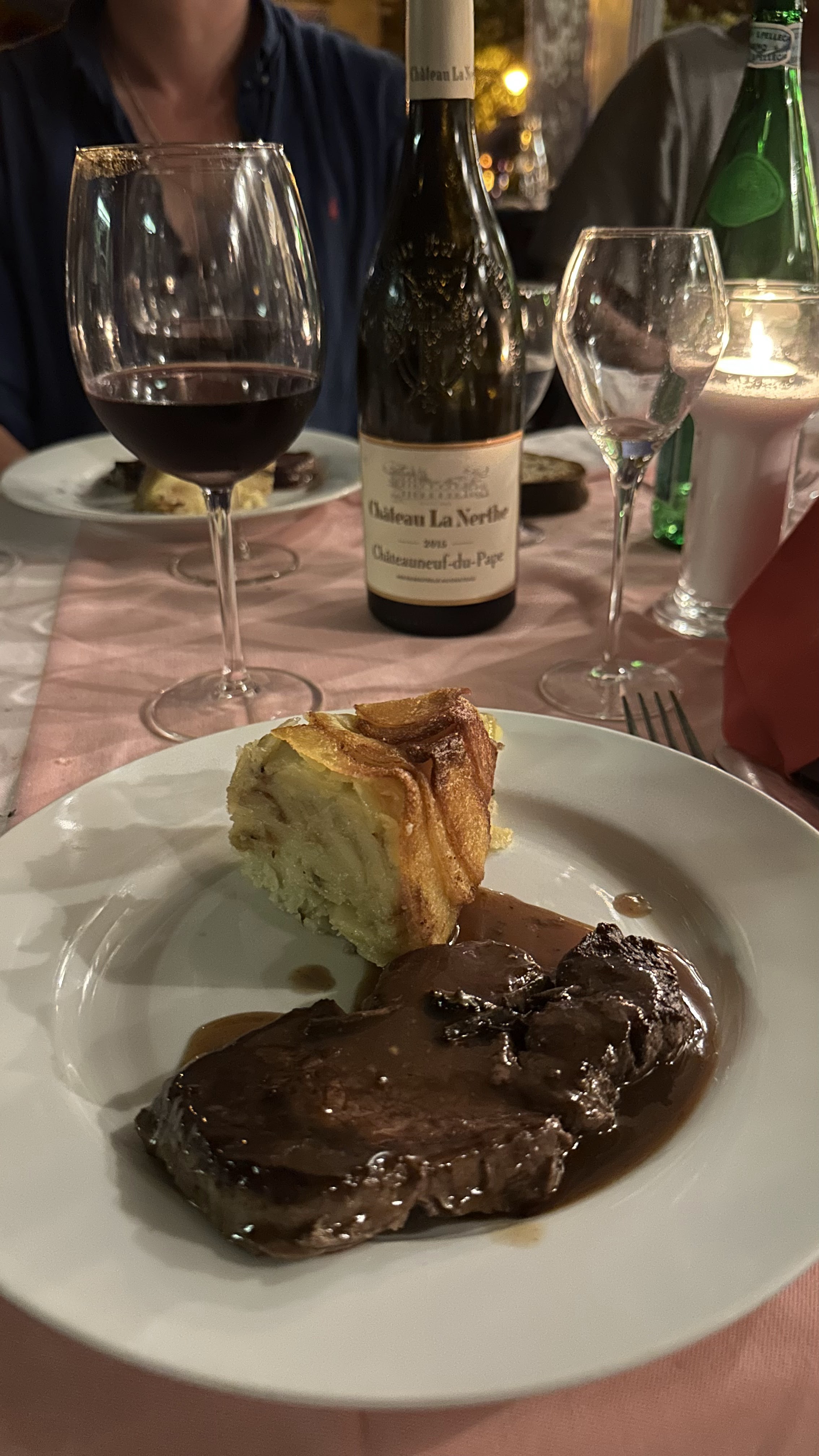 Ne mangez pas beaucoup avant de venir ici. Le menu est incroyable et ils commencent avec du pain et une superbe sélection de pâtés, de beurre et de cornichons. Mon début était le saumon fumé, mon ami avait des escargots qui étaient très savoureux. J'ai commandé le tournado au foie gras qui était vraiment décadent. Le nettoyant pour palette était une petite cuillerée de glace à la vanille sur des mini crêpes. Le dessert était une sélection de mousse au chocolat, pêches au sirop et panacotta... Bourré, rassasié et je reviendrai certainement la prochaine fois que je serai dans le sud de la France.