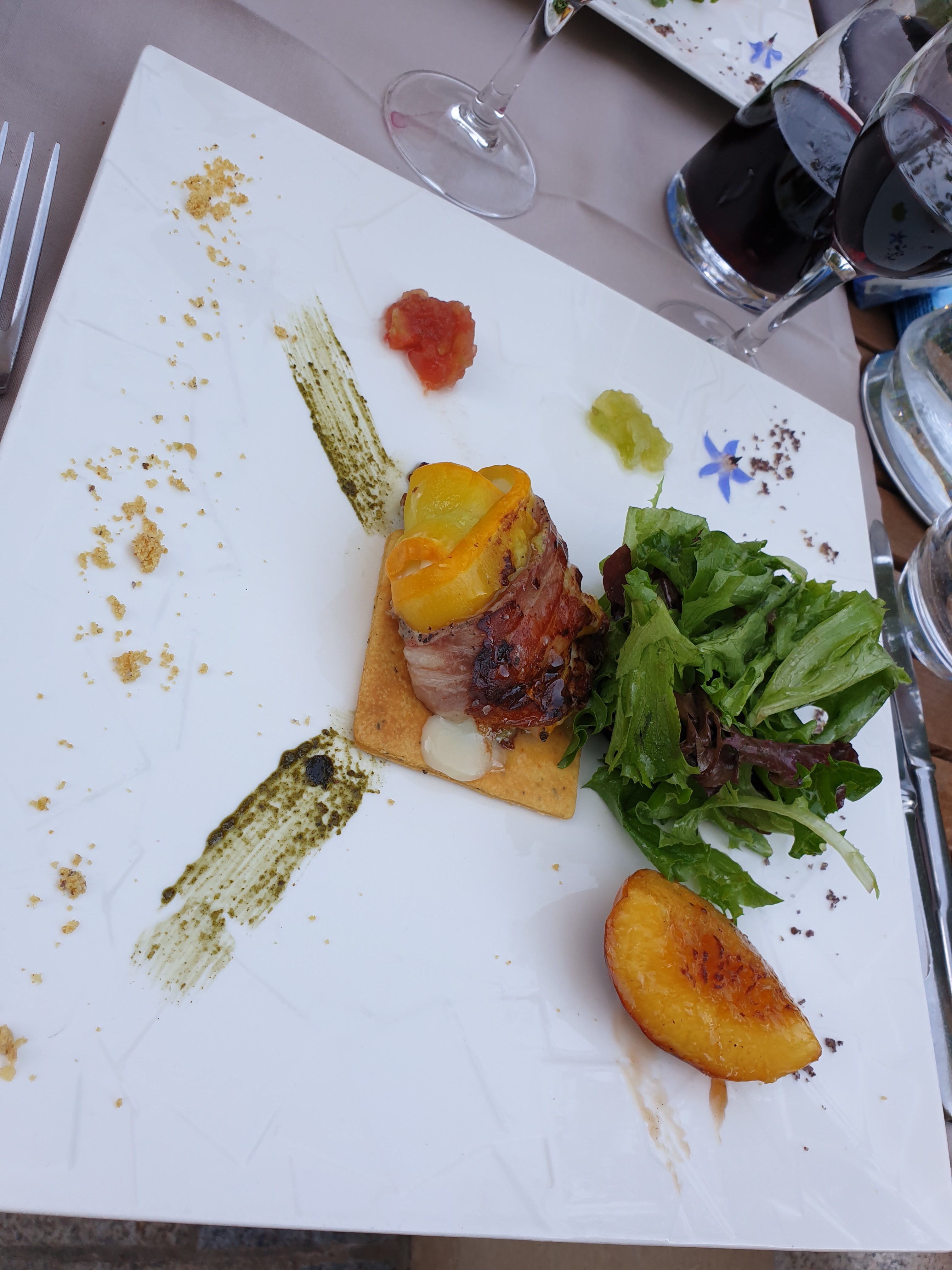 Très bon repas mais cependant 2 bémols : - le 1er pas très important : pas de serviette en tissu sur la terrasse alors que dans la salle il y en a - 2eme énorme bémol : des toilettes vieilles, limites propres, sans serviette pour s'essuyer. Il y a vraiment un gros décalage entre la qualité de la cuisine et ce lieu d'aisance !!!