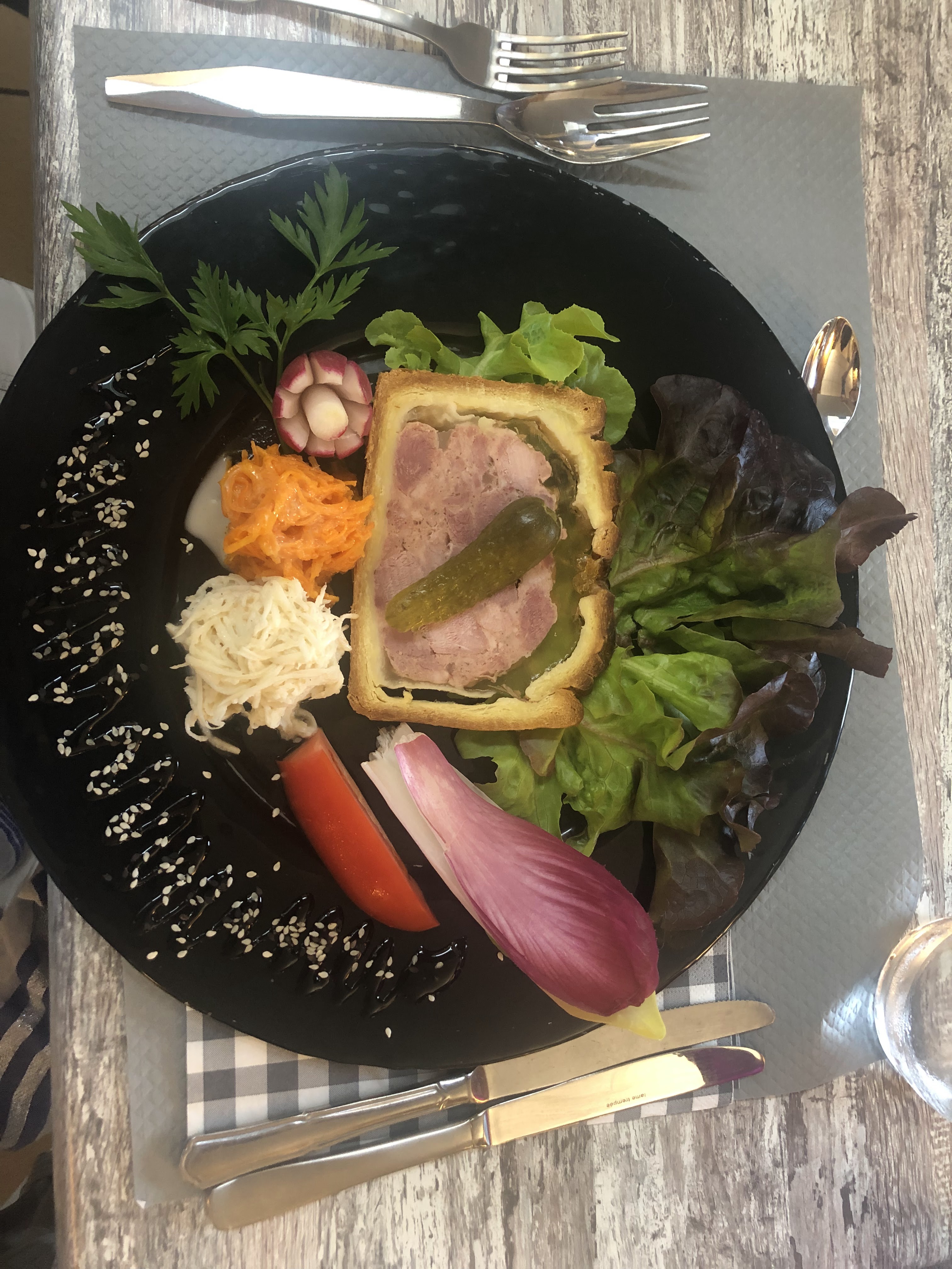 Déjeuner en famille. Cuisine très bonne, mais le service était trop long. (Arrivée à 12h15 et départ à 15h). Dommage !