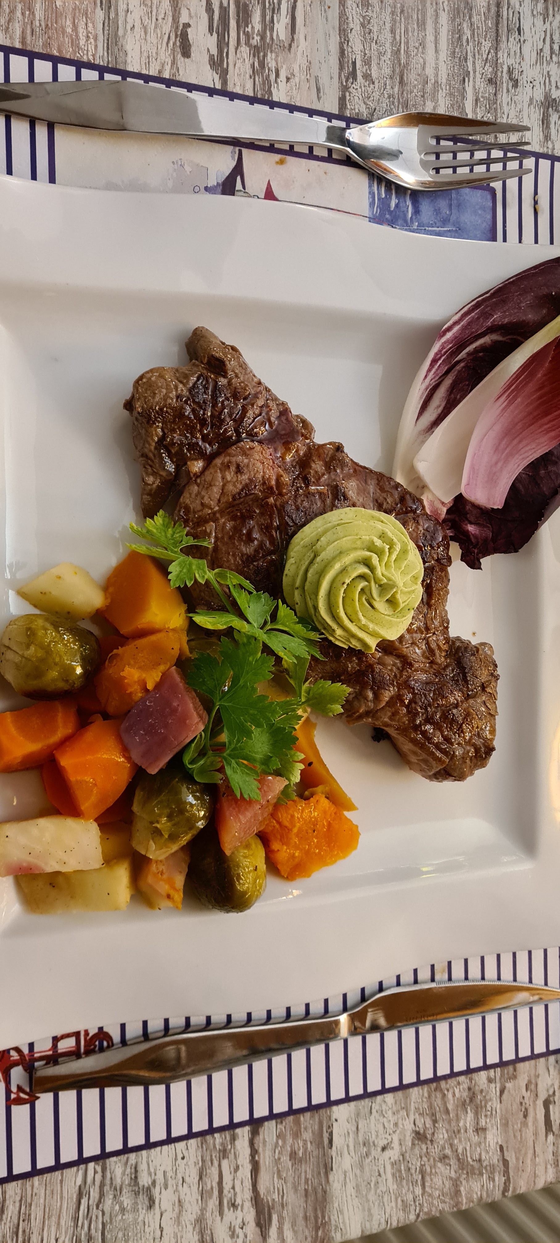 Personnel très poli et gentil pour le gibier avec les pâtes du chou rouge sympose et en quantités à réviser mais la cuisson bien faite . A suivre je reviendrai