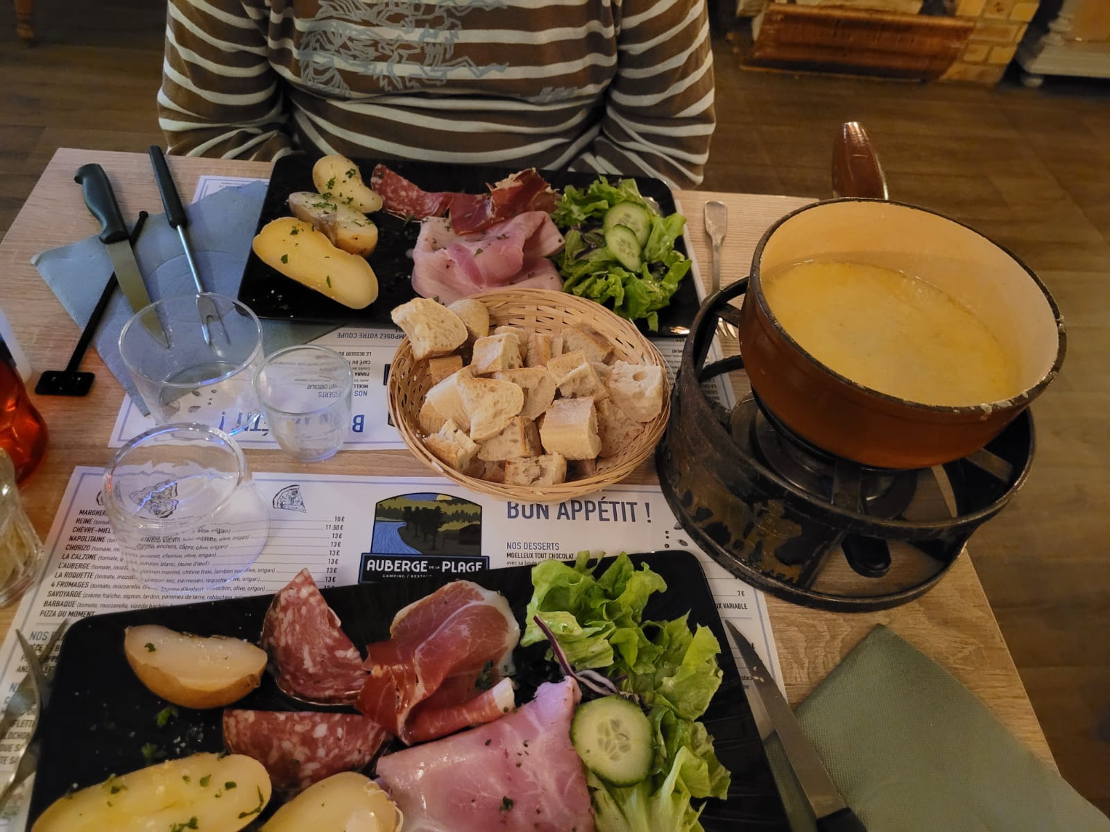 Cadre agréable à proximité de la Creuse, repas typé savoyard, simple mais très bon.