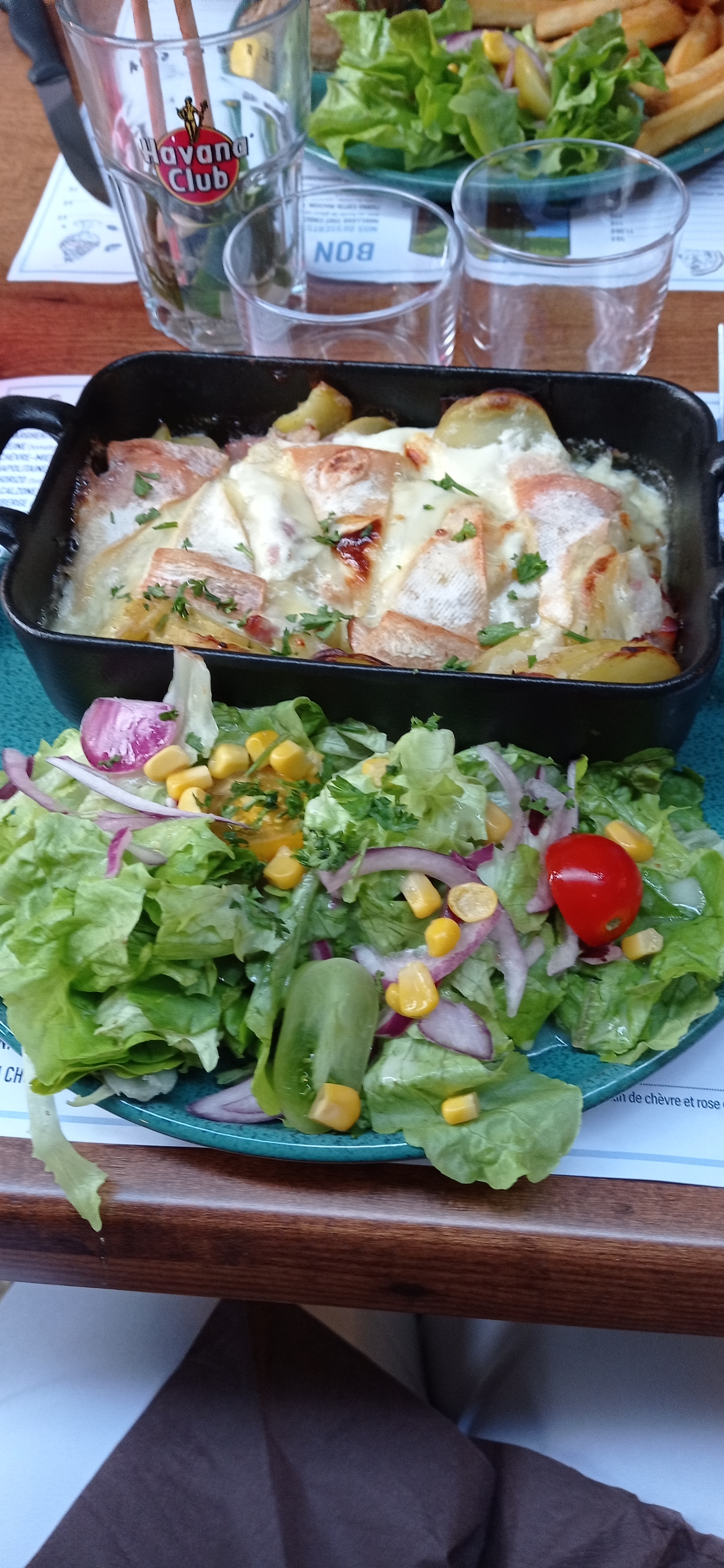 Pour ma part,je vous déconseille le camenbert pané trop cuit,sec et les frites trop cuites. Tartiflette les lardons se sont fait la malle et la crème il faut chercher déçu désolé