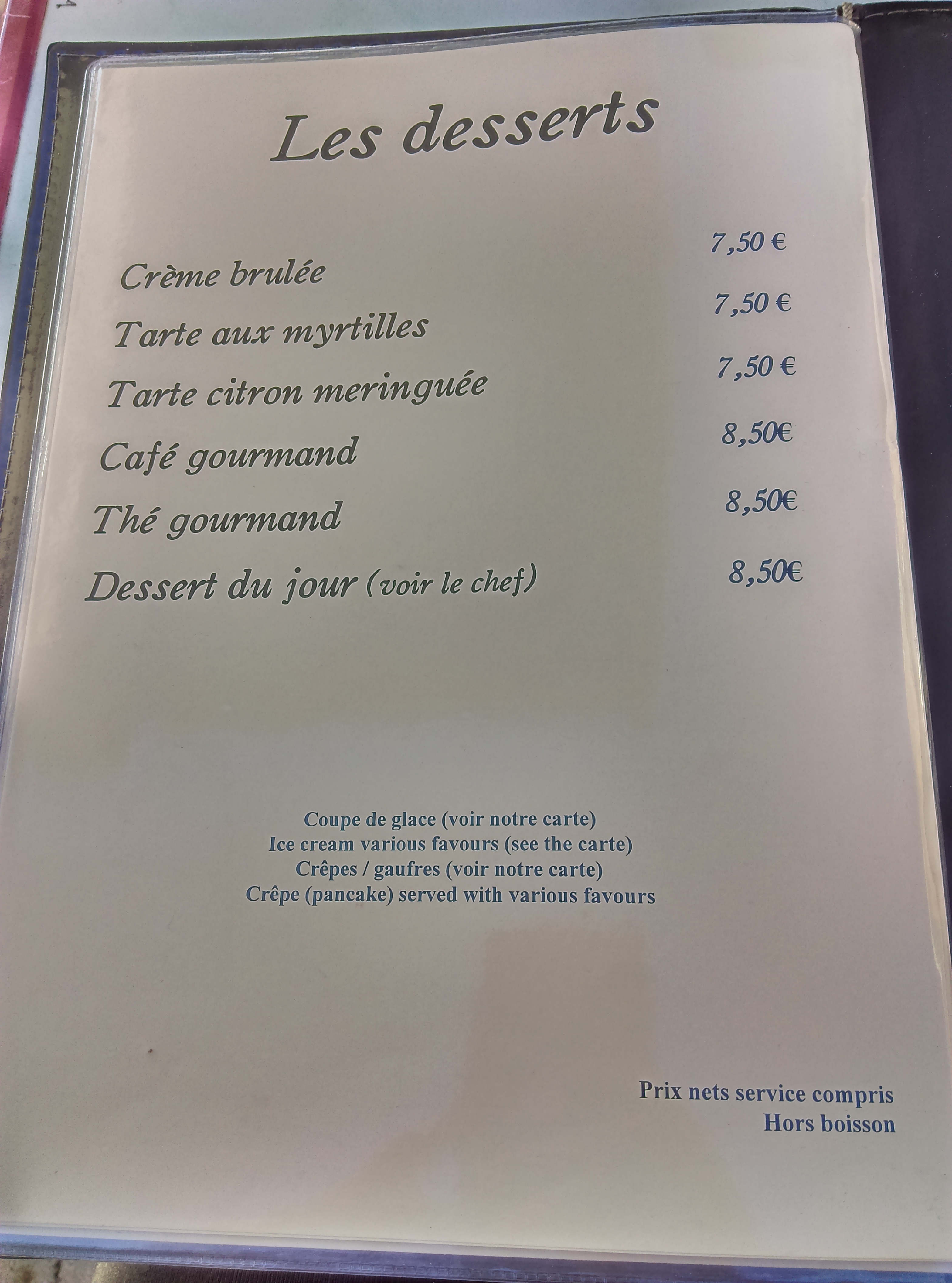 Nous avons pris le goûter (crêpes et gaufres) prix très cher!! gauffre au Nutella a 5€50... Serveuse peux souriante et froide. Nous ne reviendrons pas et ne conseillerons pas cet endroit .