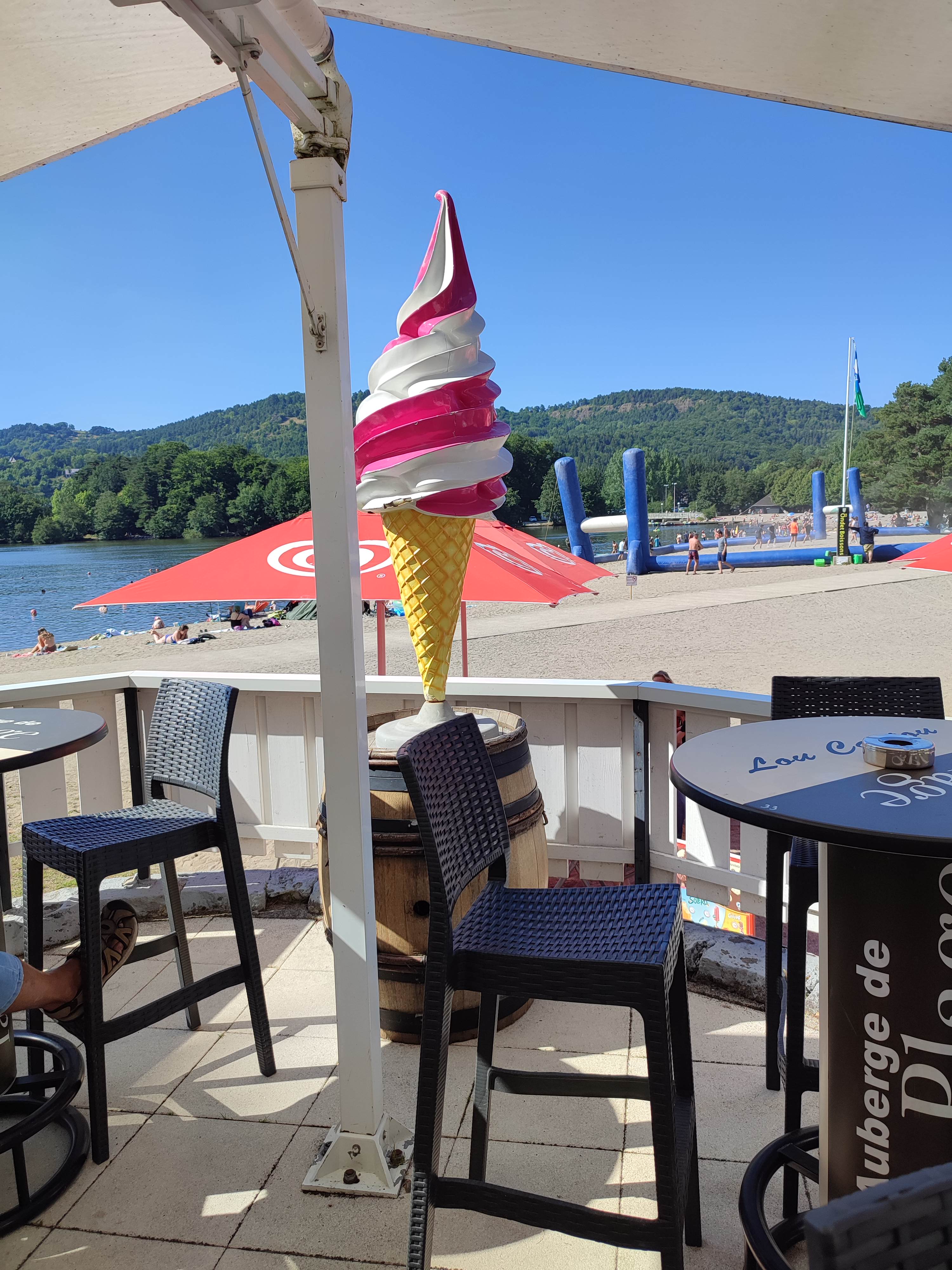 Bien pratique pour se désaltérer après une baignade dans le lac en face, ou après la promenade autour du lac. Personnel un peu rustre parfois, mais rapide. Les prix sont correct.