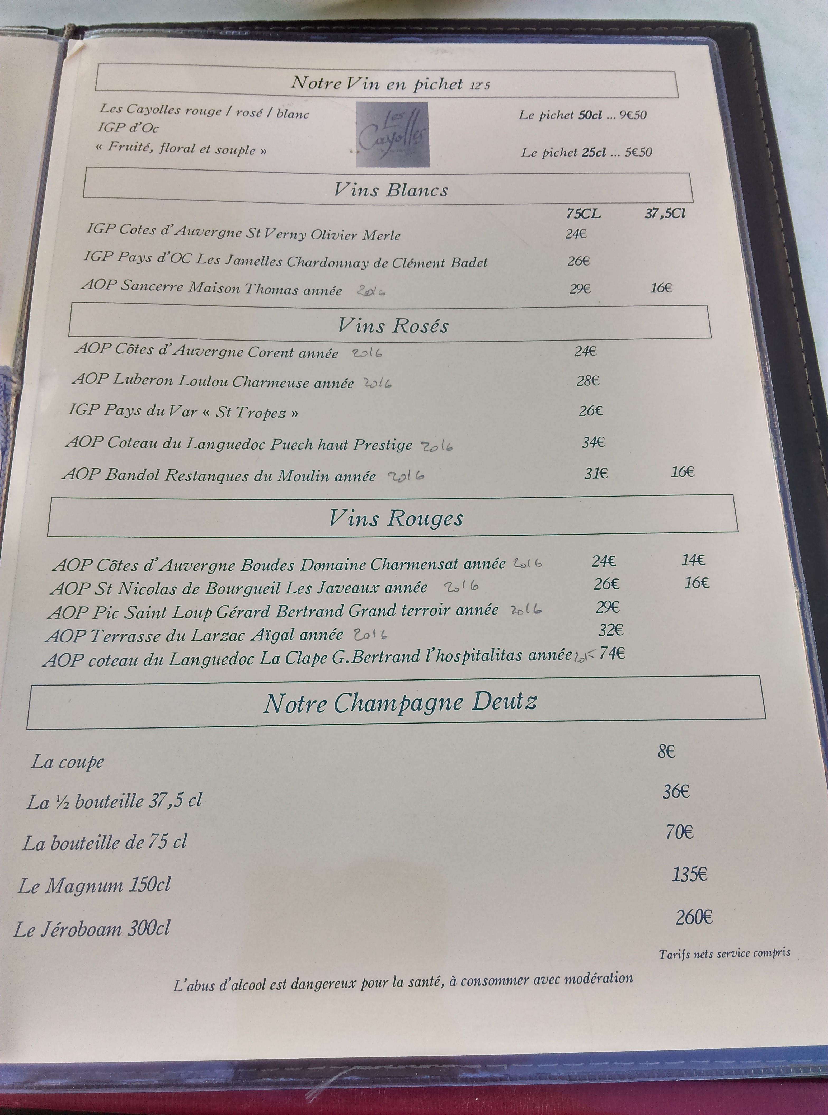 Prix des menus très correcte. Très bonne ambiance de la part du patron et des serveuses. A conseiller fortement