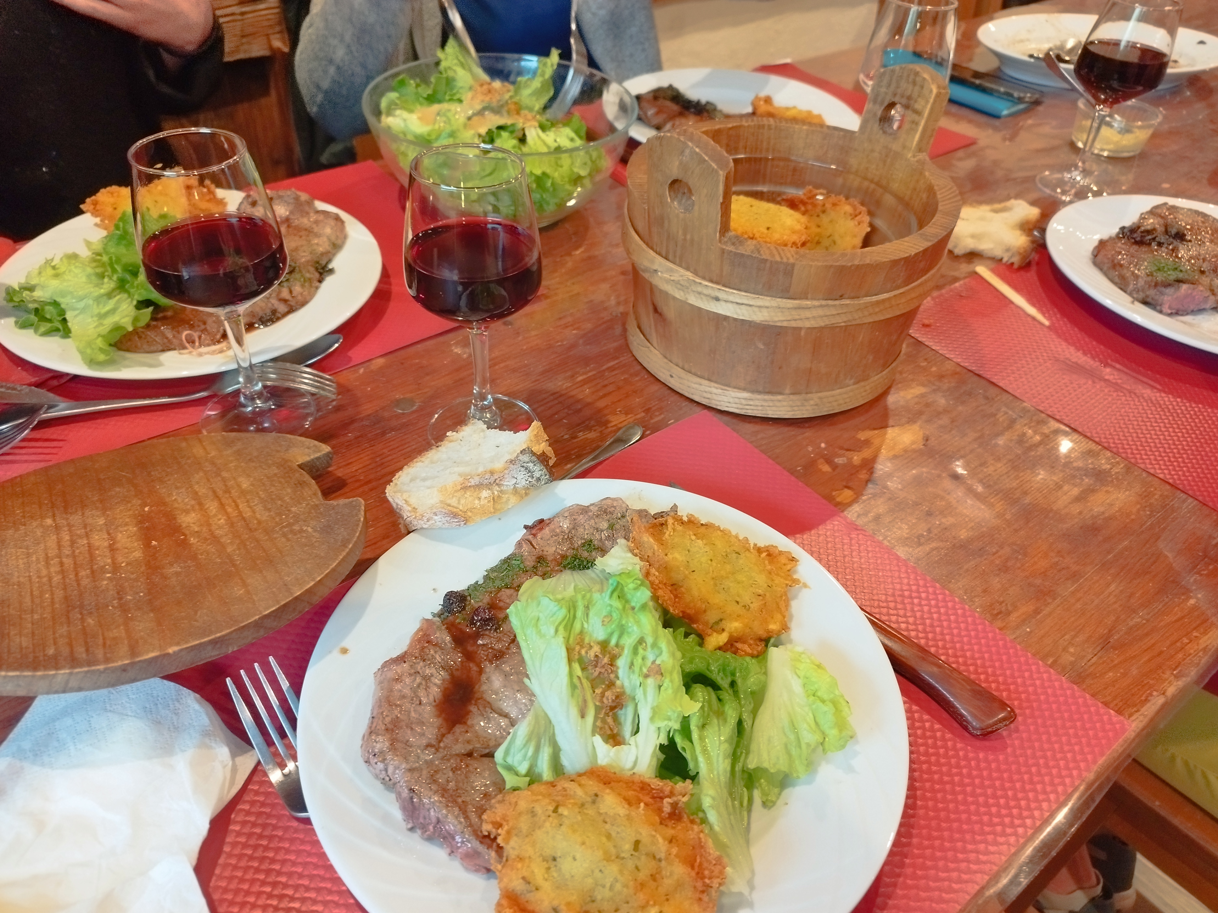 Excellent repas de beignets de patates faits maison, (pas gras ) avec de la charcuterie. Menu à 22€. La salle entièrement refaite est magnifique et très lumineuse. Terrasse en plein air pour cet été. Nous avons passé une excellente soirée avec des amis Canadiens qui se sont régalés.