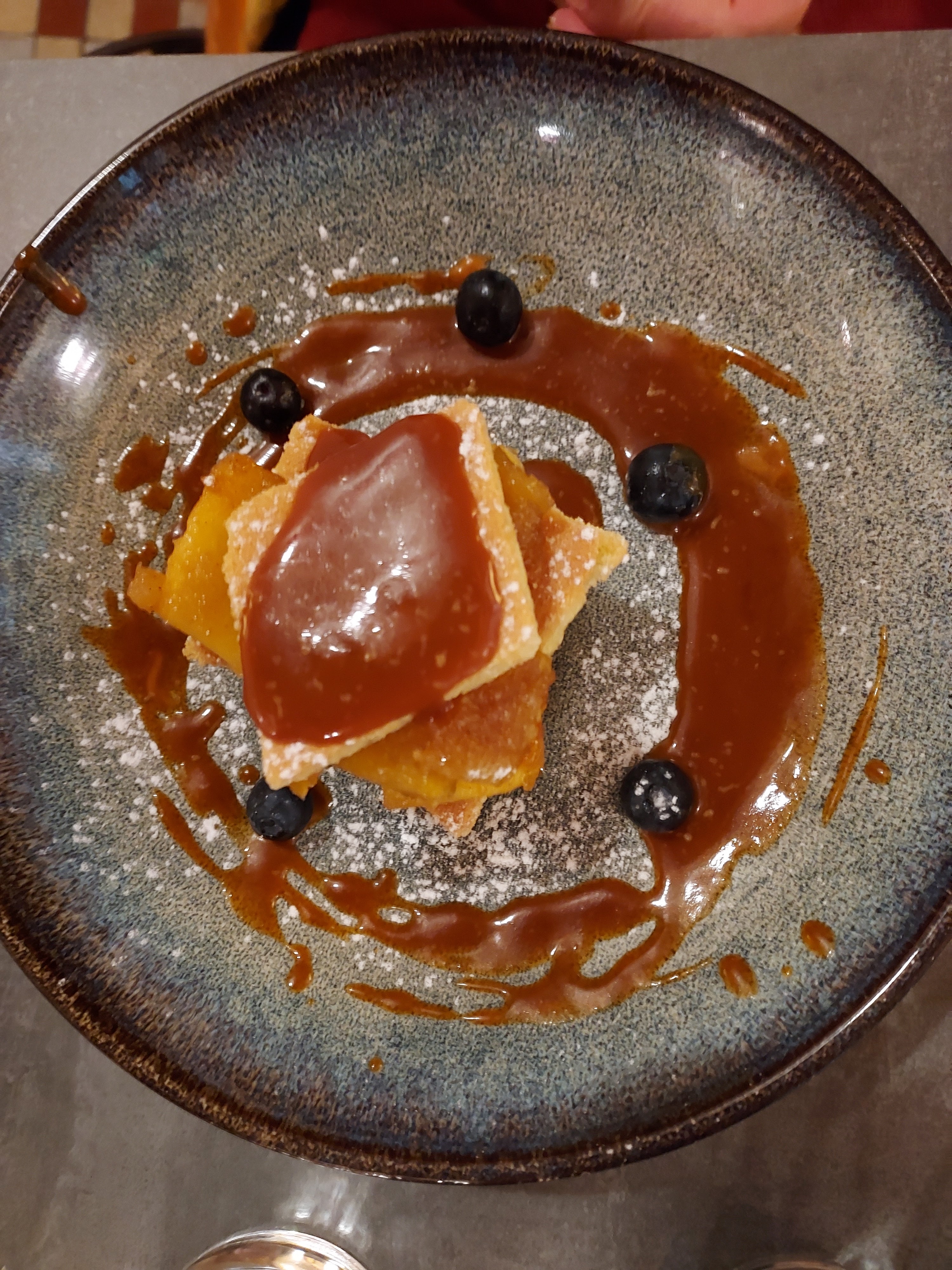 Nous avons voulu essayer ce restaurant de part ses recommandations. Nous sommes très mitigés. Les plats sont bons mais ce n est pas de la grande cuisine, pas de légumes avec la purée accompagnant la viande. Les portions sont plutôt justes et les desserts assez quelconque ( crumble notamment). Le rapport qualité prix est moyen. La serveuse était sympathique mais c était très très long !! Il nous a fallu 25 minutes de plus pour avoir notre addition.