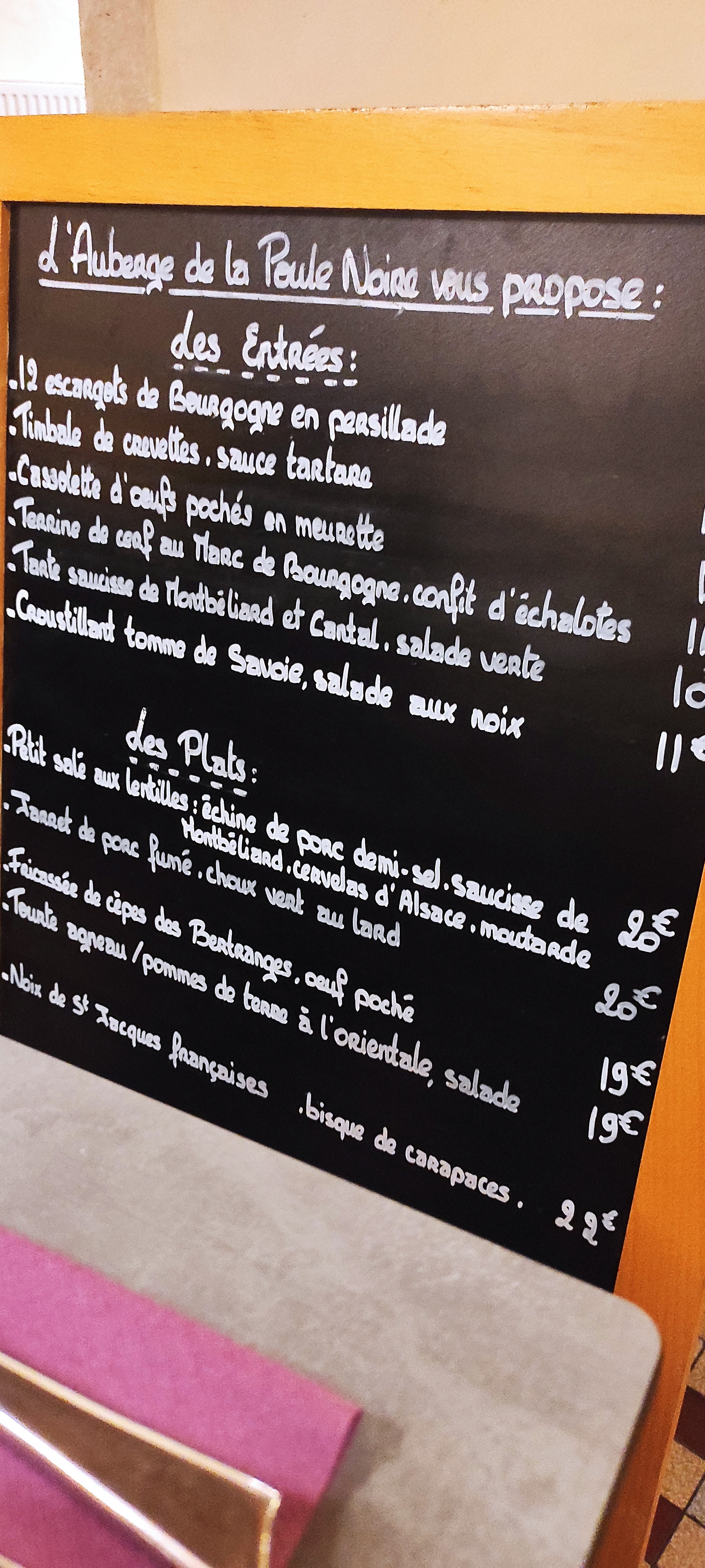 Au cœur de La Charité sur Loire, l'auberge de la Poule Noire vous propose chaque jour une carte différente, carte restreinte certes mais la qualité est au rendez-vous ! Très bonne cuisine française !!!