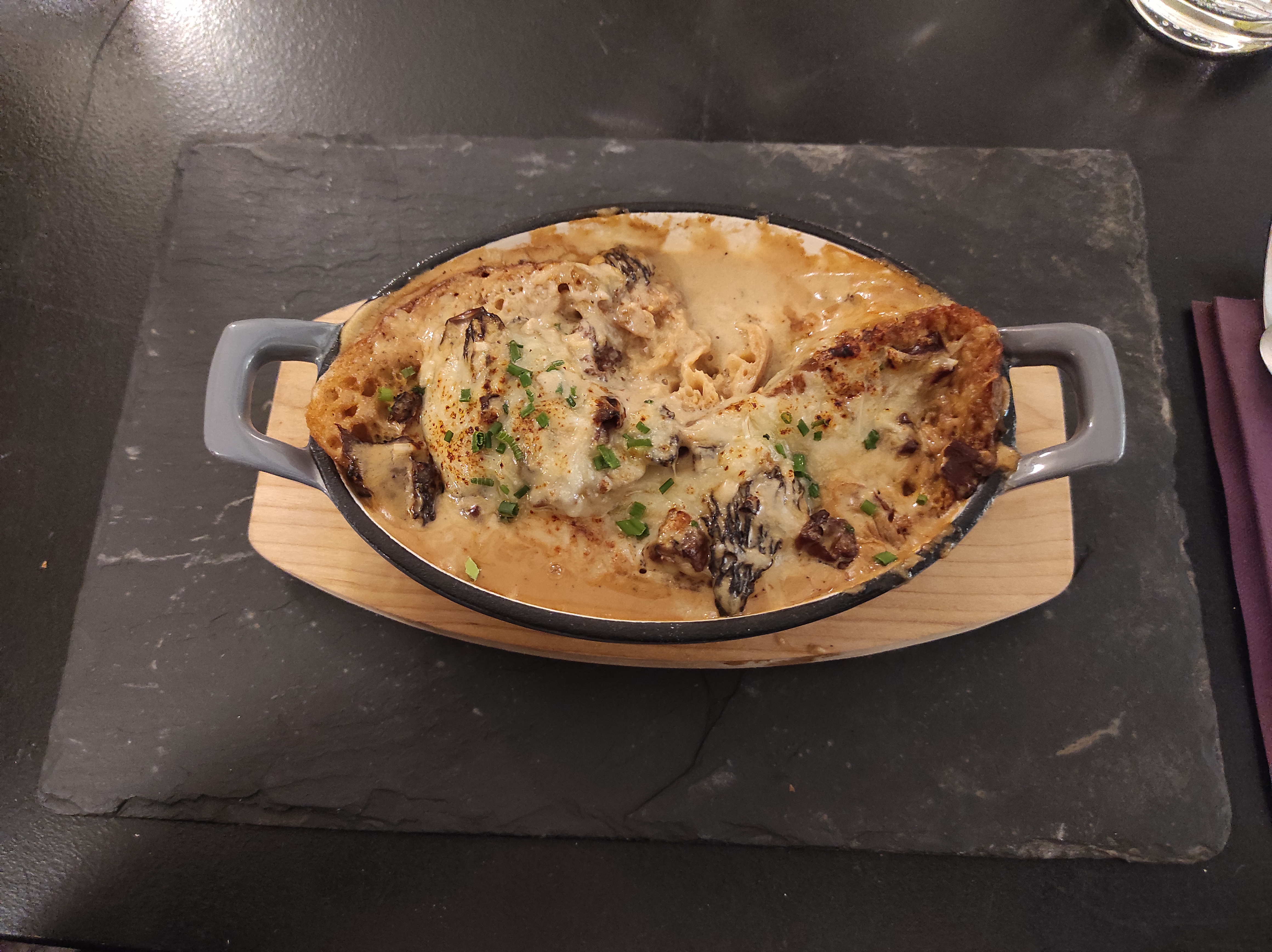 Assez moyen. Entrée décevante, tartare de thon fade, sablé parmesan mal exécuté. Brochette de bœuf sans goût. Gratin de ravioles délicieux. À essayer absolument! Baba au rhum très bon, bien imbibé, peut-être trop.