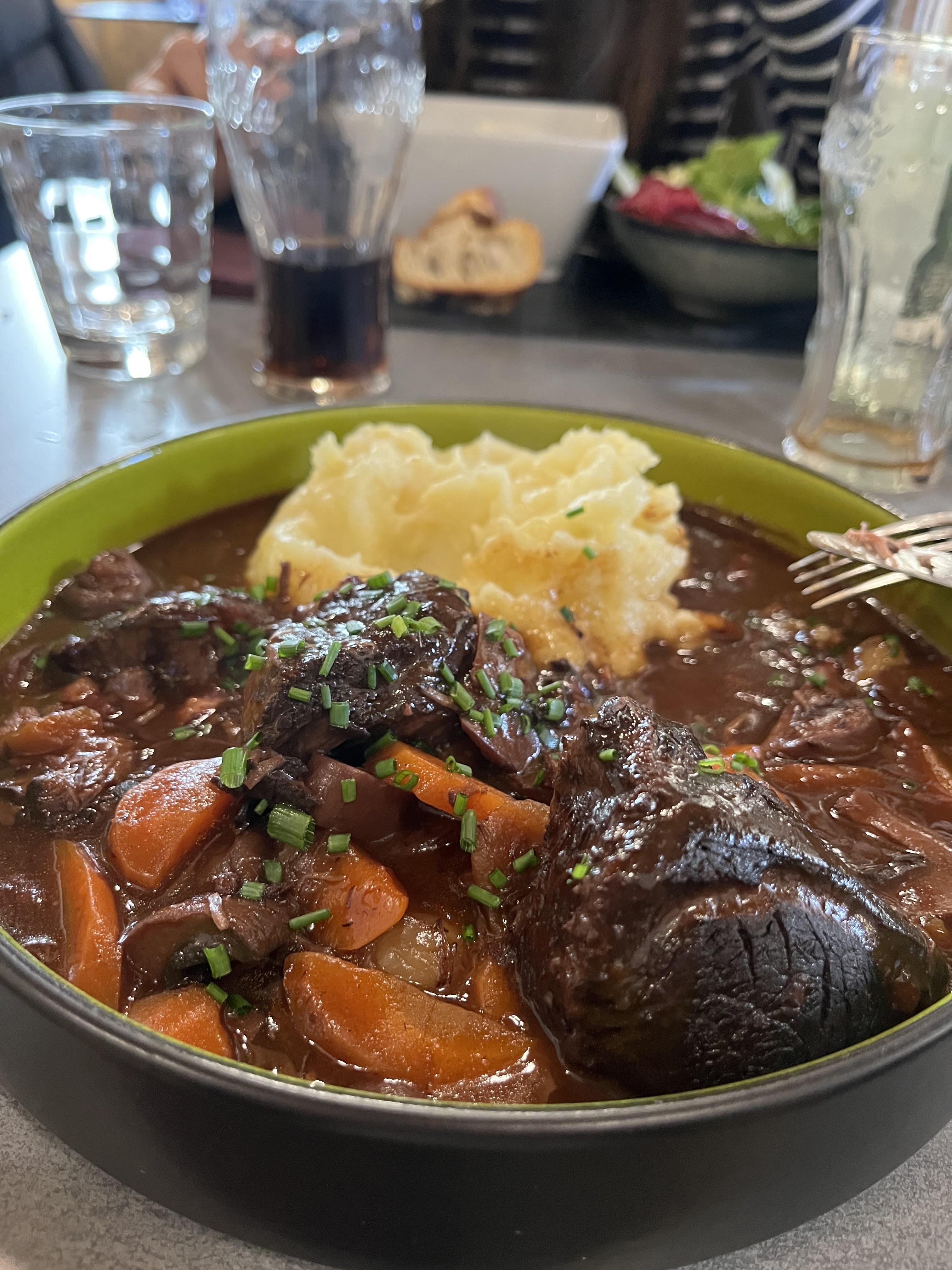 Il y avait longtemps que je n'avais pas goûté à des spécialités bourguignonnes et j'ai été gustativement enchantée par les escargots et le bœuf bourguignon 😋 Un bémol pour les pommes de terre vapeur à peine assez cuites à mon goût mais c'était le seul petit défaut car il y avait également une très belle carte des vins et notre serveuse était souriante et adorable !
